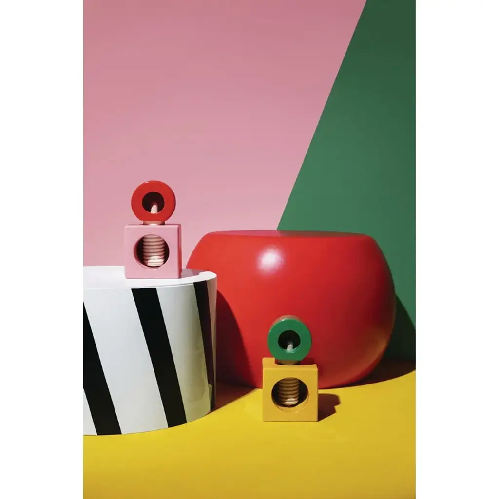 Alessi’s ES20 nutcracker from the Twergi collection is an extraordinarily expressive kitchen tool created by the legendary Italian designer Ettore Sottsass. Shaped like a small totem, the beechwood nutcracker has a simple, twistable mechanism that easily opens nutshells of all kinds. And when not in use, the nutcracker adds a delightful pop of color to the kitchen or table setting. First launched in 1989, Alessi's Twergi collection consists of wooden objects inspired by the ancient tradition of woodturning. In Italy's woodwork-famous Strona Valley, the word "twergi" is local dialect for "elf". Elves were believed to be both mischief-makers and teachers, for example, in the craft of woodworking. Each item in the Twergi collection is made in Italy, with some parts crafted by hand on a lathe.