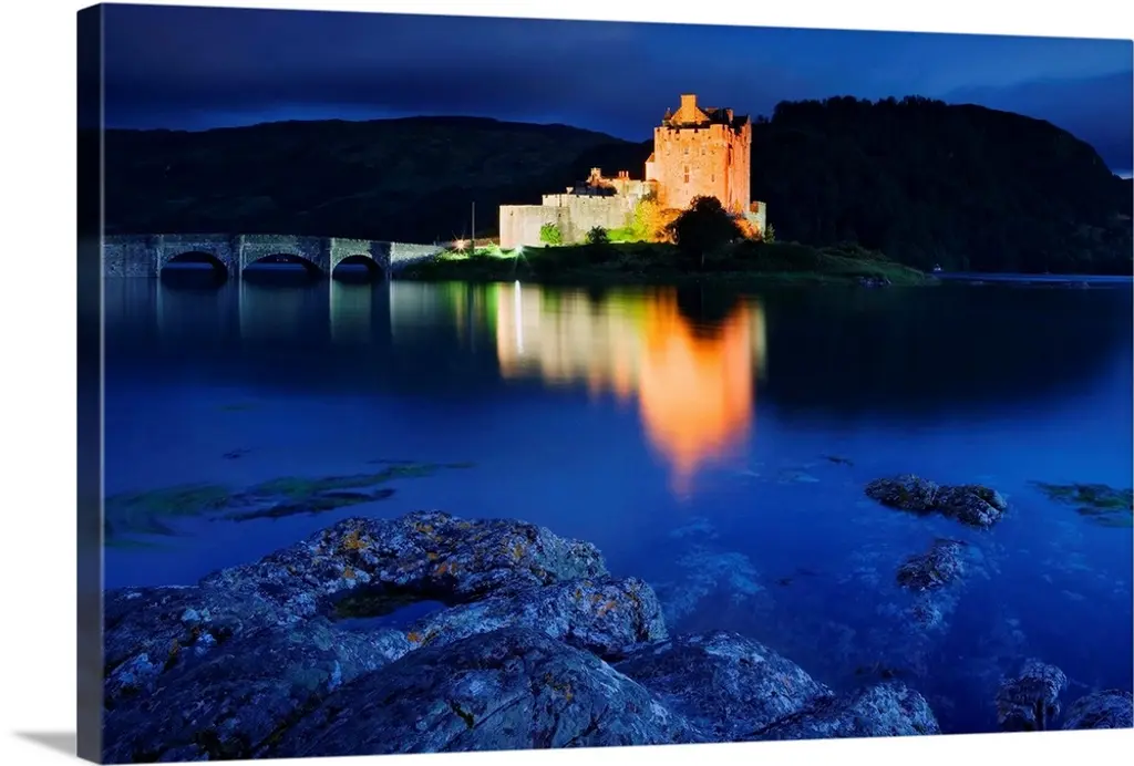Twilight Over Eilean Donan Castle On Loch Duich, Dornie, Scotland. Autumn