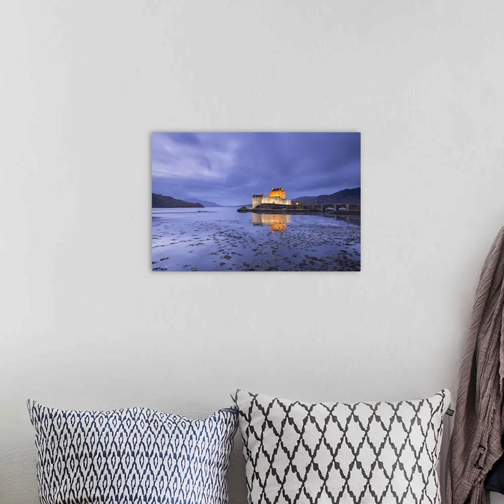 Twilight over Eilean Donan Castle on Loch Duich, Dornie, Scotland. Autumn (November) 2013.
