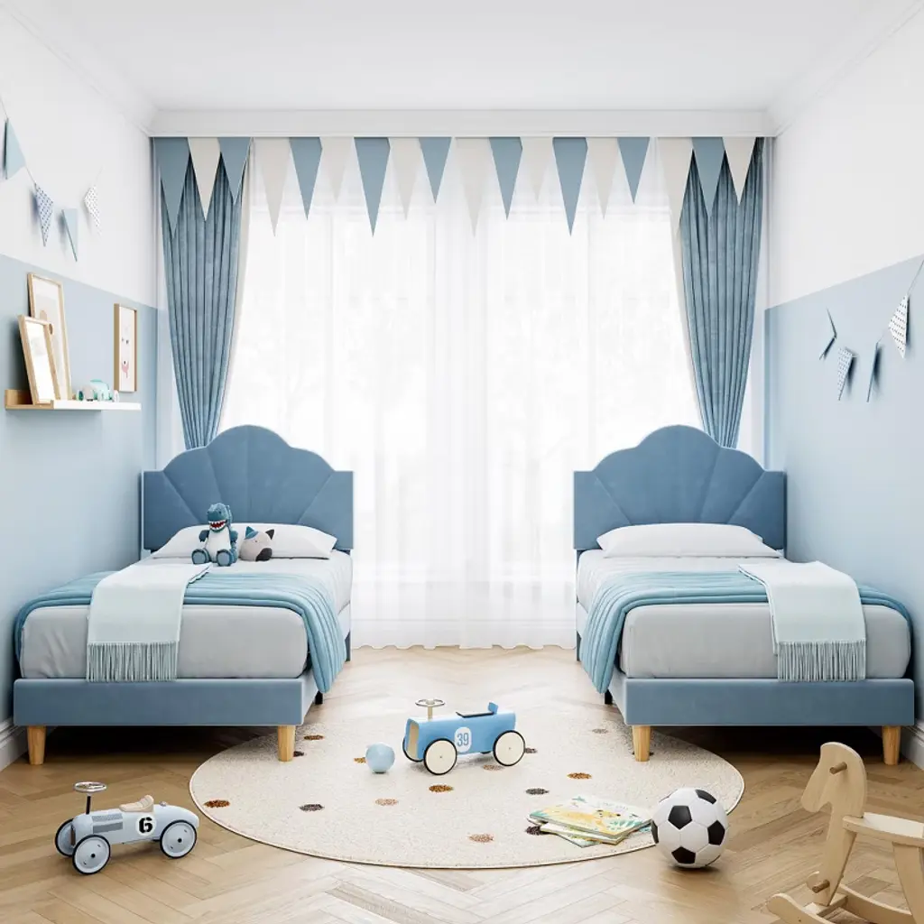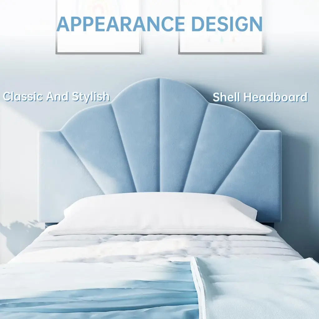 Twin Bed Frame With Shell Headboard, Velvet Upholstered Bed Frame With Adjustable Headboard