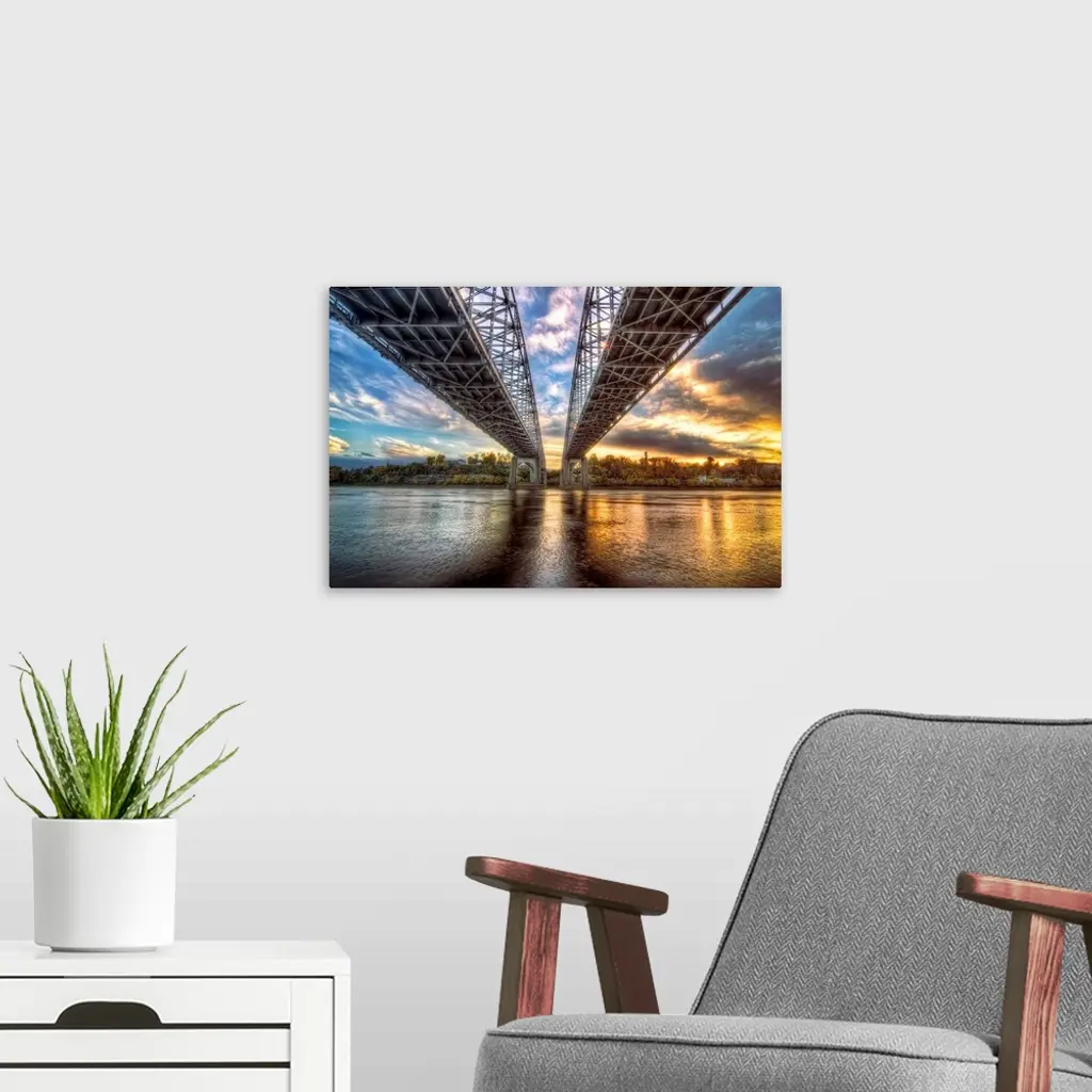 Twin Bridges across the Missouri River in Jefferson City, Missouri.