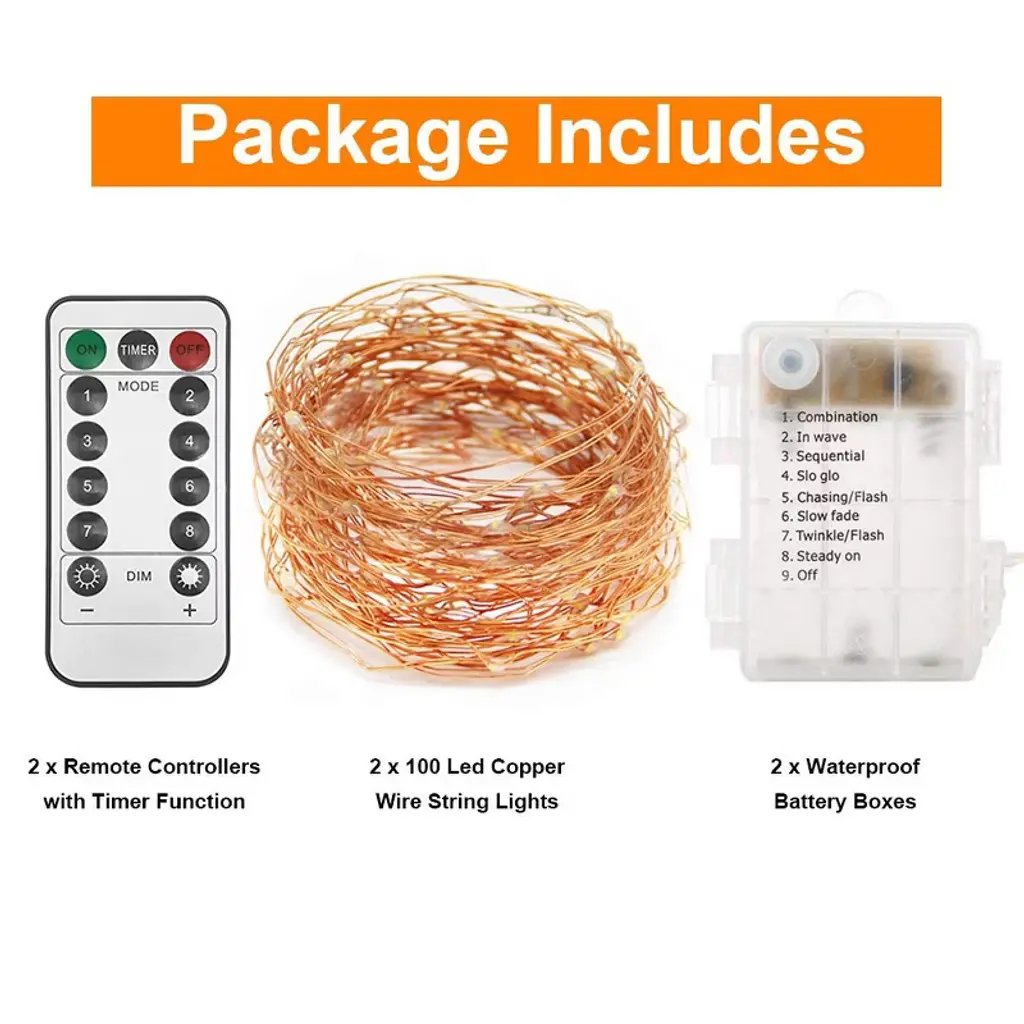 Twinkle Star 2-pack Battery Christmas Fairy Lights, 33ft 100 Led Multicolor String Lights, Remote & Timer, 8 Modes Firefly For Garden, Indoor, Party