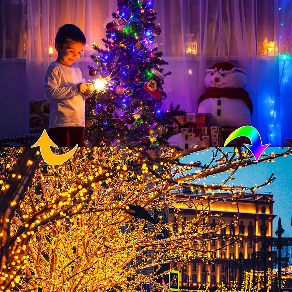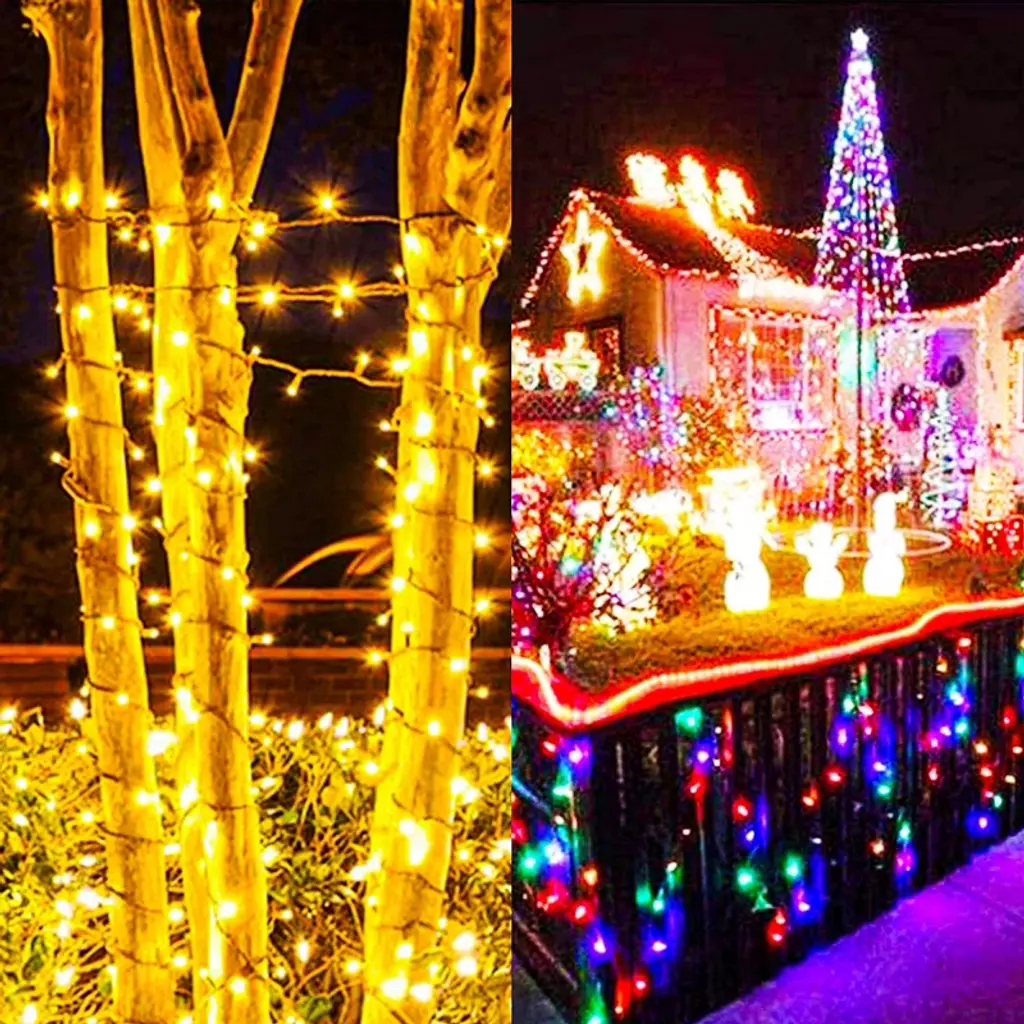 Our super bright 200 LED Warm White Wide Angle Mini Lights have 200 commercial grade LED. These commercial grade LED Christmas lights very durable, long lasting, and extremely energy efficient. The strand offers 8 different illumination settings. Giving you customizable ambiance. Click through the various options, that vary in rhythm and sequence, to match your mood, or maintain an inviting glow with the "steady on" feature. Just plug in and unplug it for power on and off. Perfect for indoor and outdoor decorations. Christmas, Halloween, party, Valentine's Day, wedding, home, window, bathroom, festival, Holiday, shows, restaurant, hotel, commercial building, shopping center, trees, wreaths, wrapping trees, patios, pergolas, bushes, hedges, fences, pillars etc.
