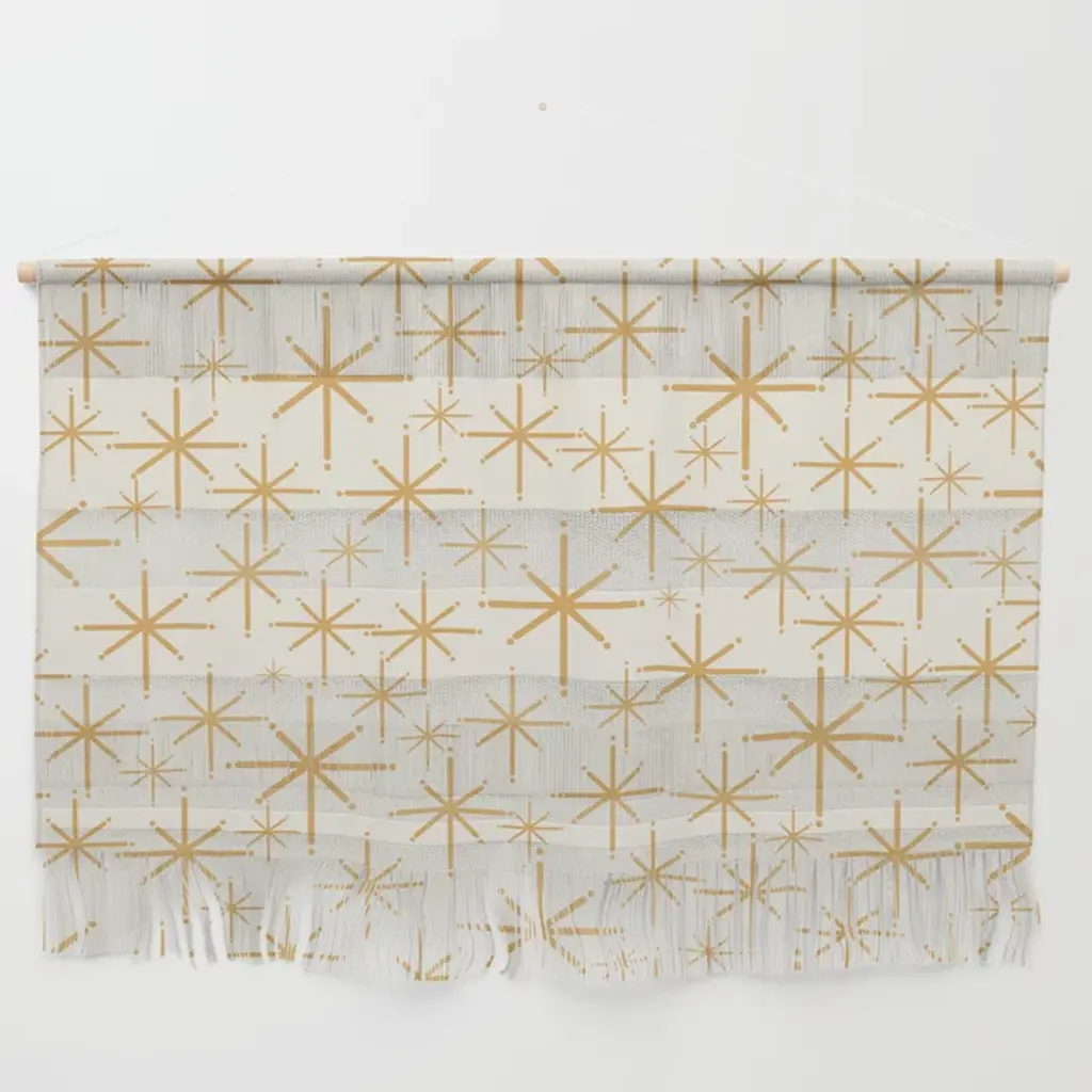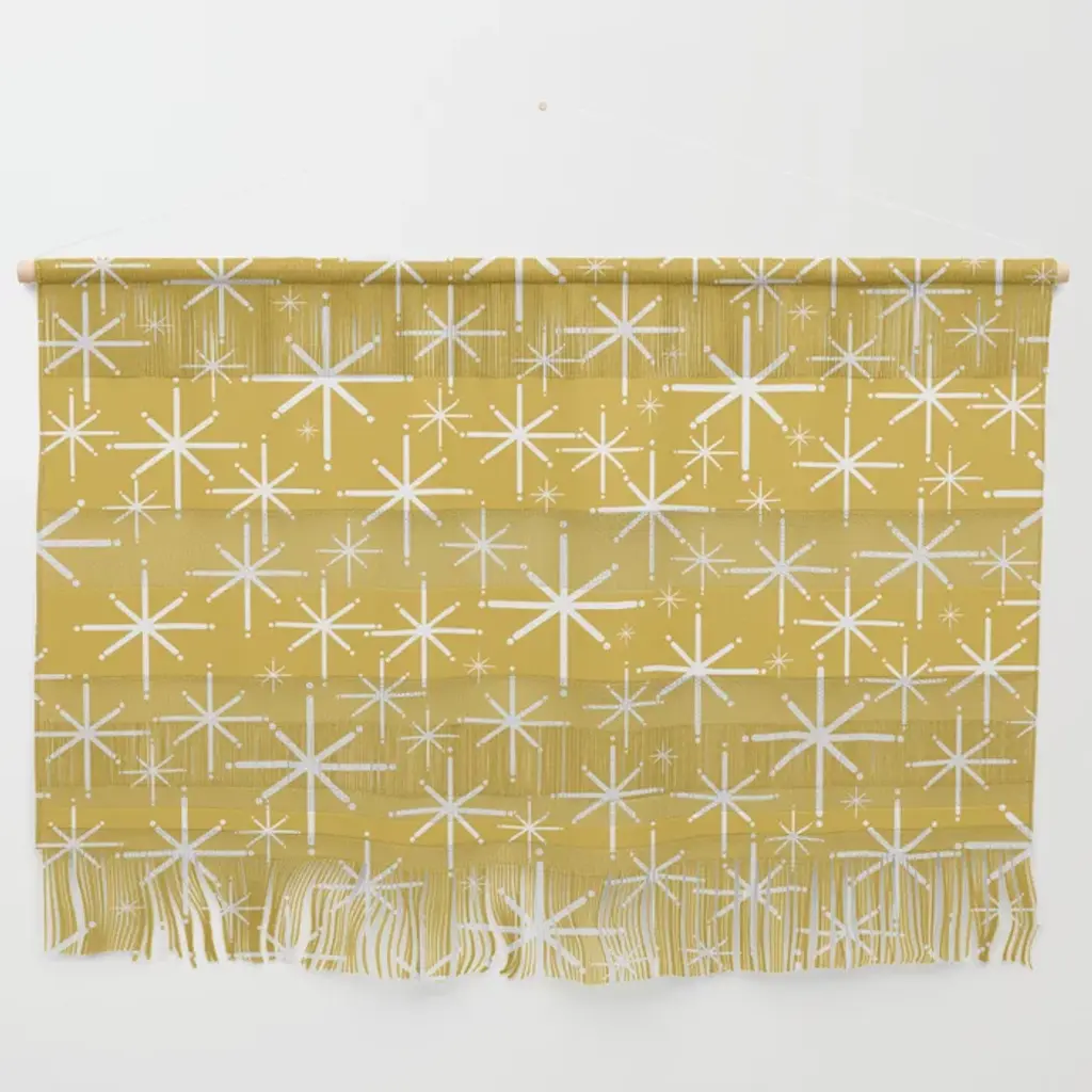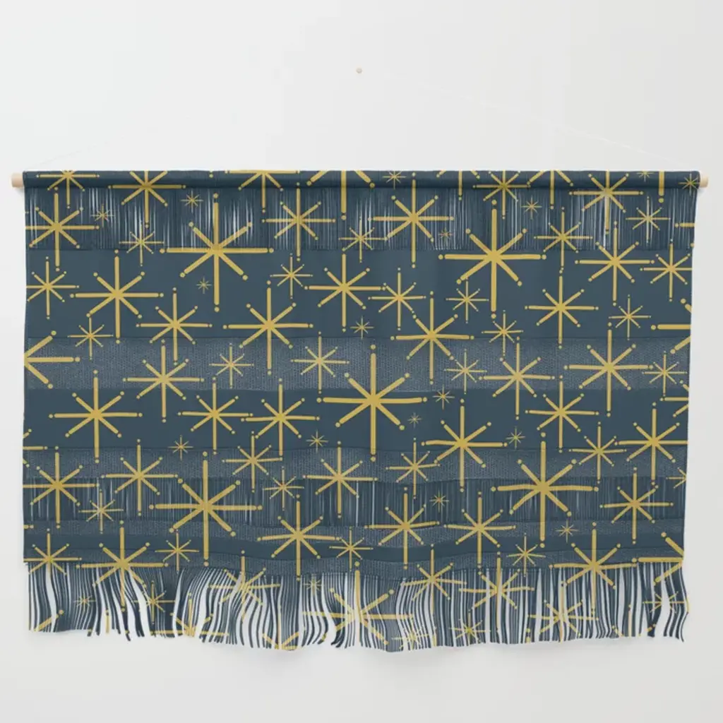Twinkling Starbursts Mid Century Modern Atomic Pattern In Navy Blue And Light Mustard Wall Hanging