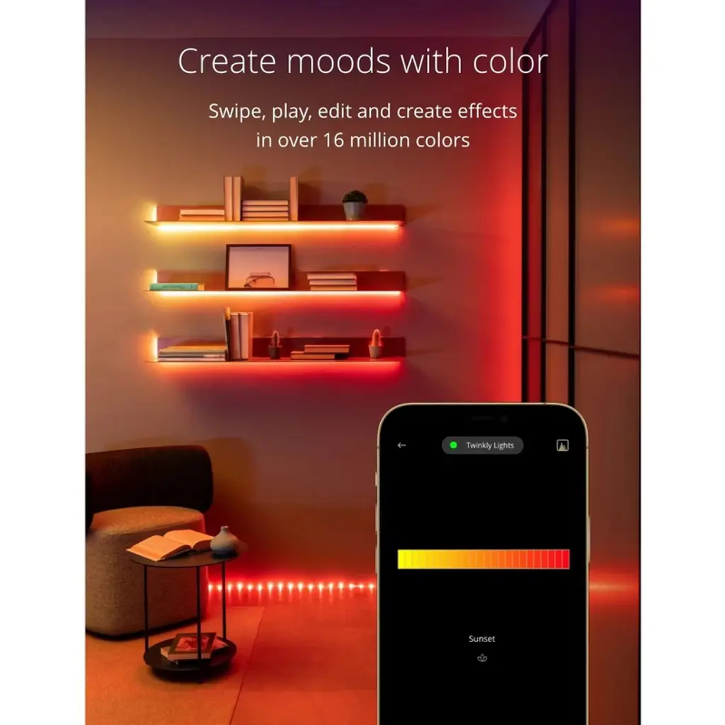 Twinkly Line App Controlled Adhesive And Magnetic White Wire Light Strip Starter Kit, Multicolor, Rgb Led, 5Ft