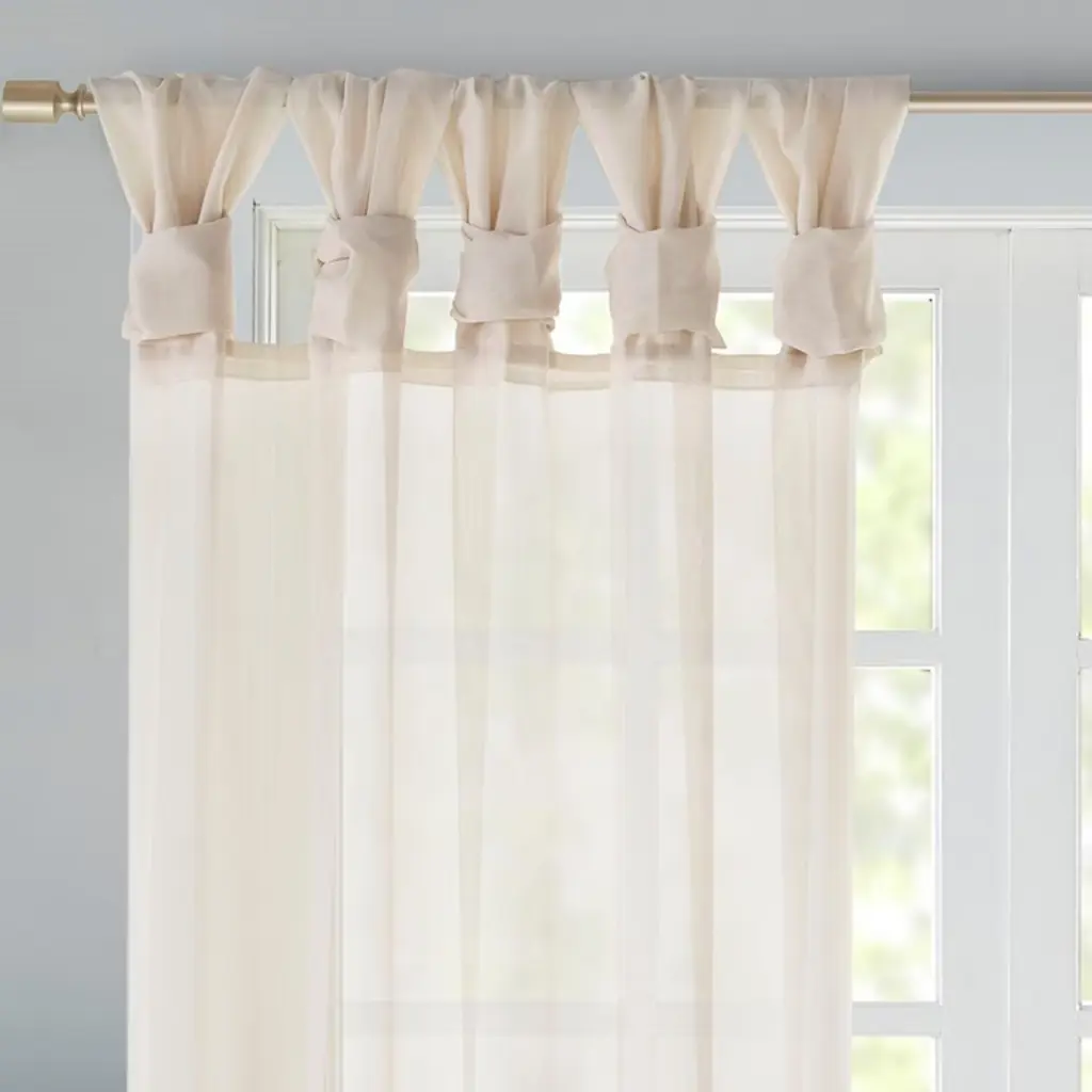 Soften your space with the Madison Park Ceres Twisted Tab Voile Sheer Window Pair. This soft panel pair provides a simple and airy update to your decor, with its lightweight voile sheer base and delicate color palette for the perfect ethereal touch. The DIY twist tab top creates beautiful and delicate folds for a stylish decorator's touch. This window panel is also OEKO-TEX certified, meaning it does not contain any harmful substances or chemicals, ensuring quality comfort and wellness. Machine washable and easy to hang, open, and close throughout the day and fits up to a 1.25" diameter rod. This window panel pair is perfect on its own for a soft filter or layer with others for a dramatic effect.