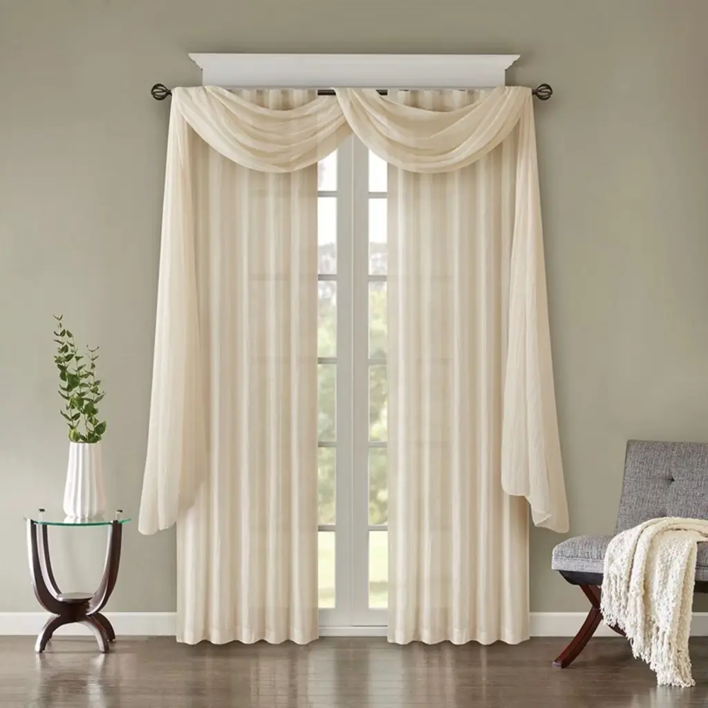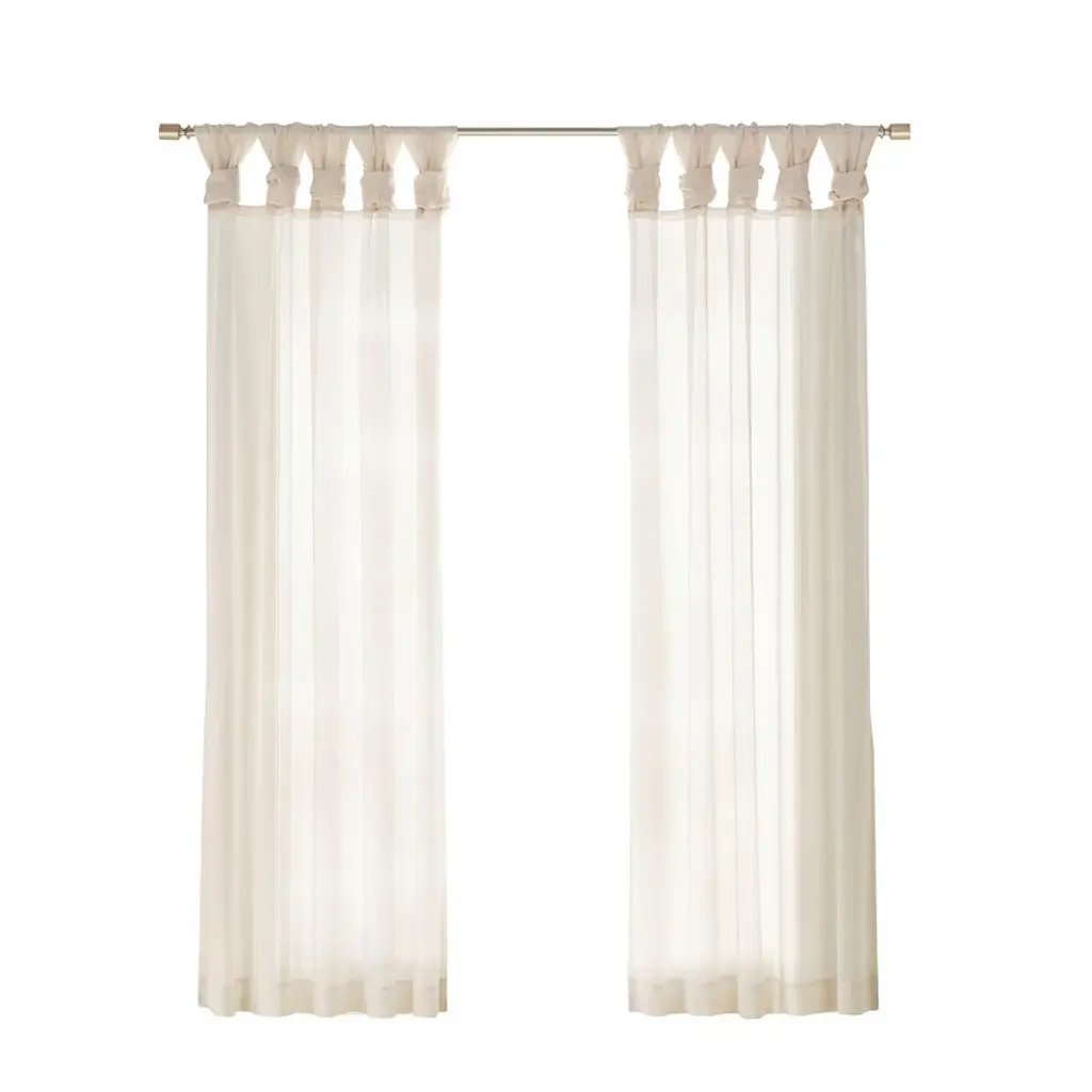 Description Soften your space with the Madison Park Ceres Twisted Tab Voile Sheer Window Pair. This soft panel pair provides a simple and airy update to your decor, with its lightweight voile sheer base and delicate color palette for the perfect ethereal touch. The DIY twist tab top creates beautiful and delicate folds for a stylish decorator's touch. This window panel is also OEKO-TEX certified, meaning it does not contain any harmful substances or chemicals, ensuring quality comfort and wellness. Machine washable and easy to hang, open, and close throughout the day and fits up to a 1.25" diameter rod. This window panel pair is perfect on its own for a soft filter or layer with others for a dramatic effect. Product Details 2-PK 50x95" 2 Window Sheers:50"W x 95"L (2) Material 100% Polyester