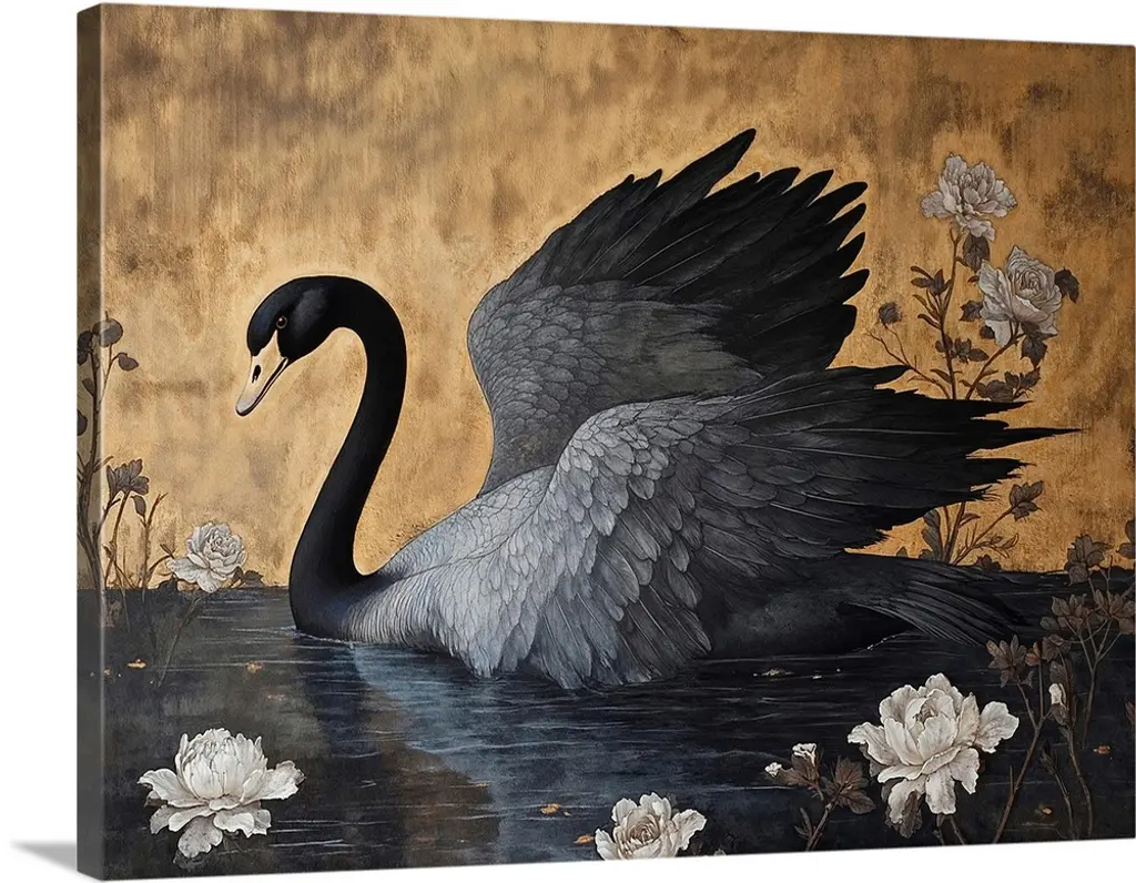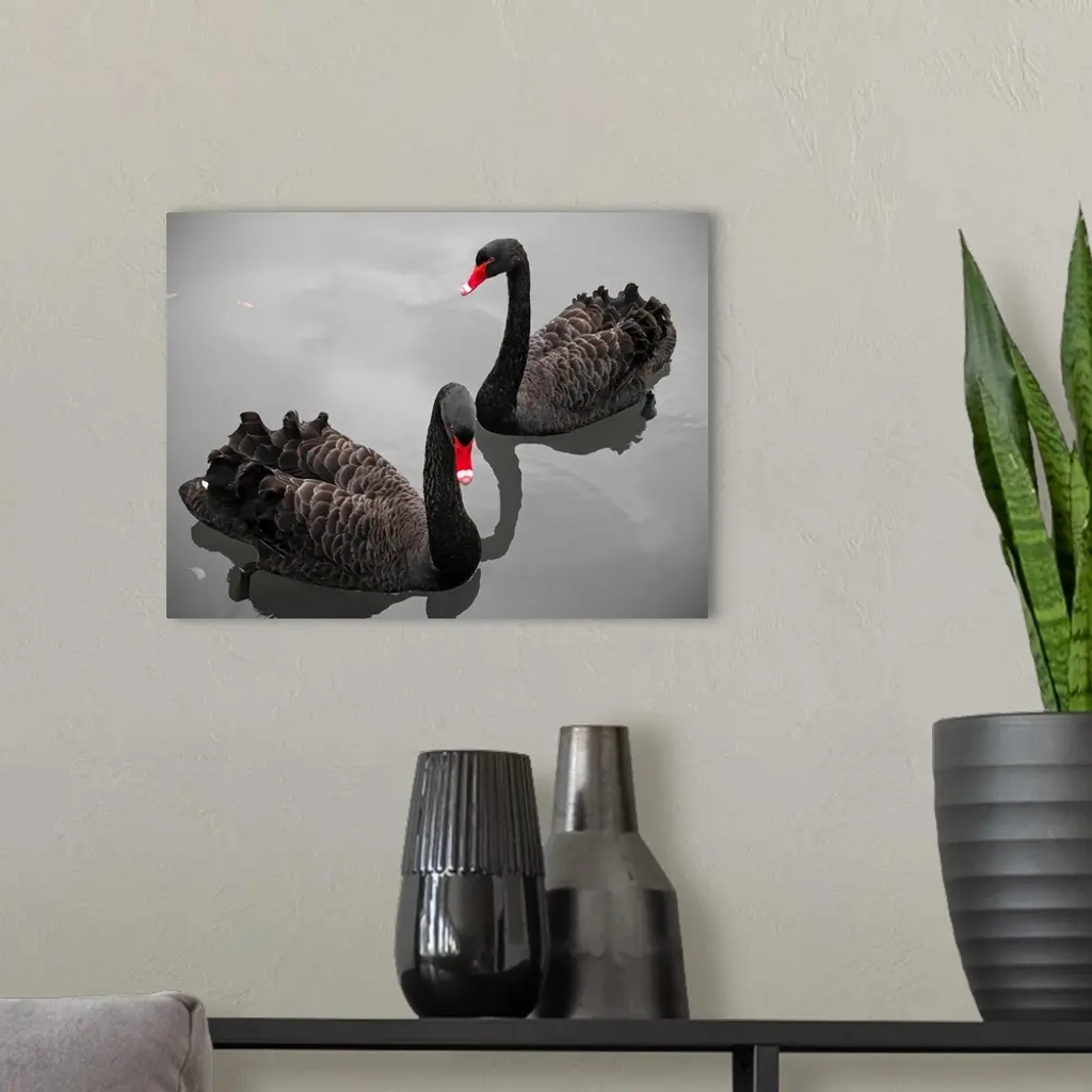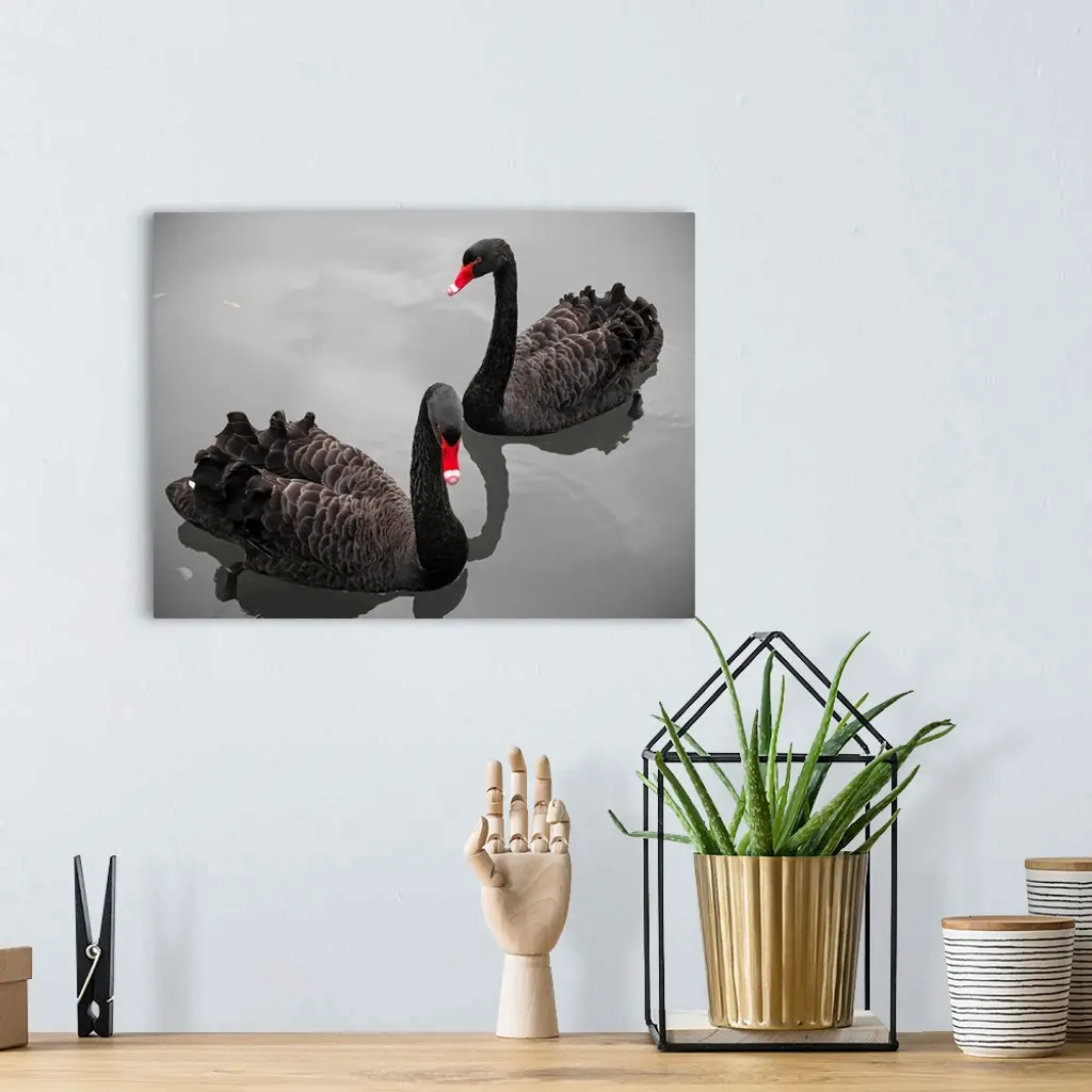 Two black swans in pond in Limburg, Netherlands. wall art for home and office decor. Discover canvas art prints, photos, mural, big canvas art and framed wall art in GreatBigCanvas.com's varied collections.