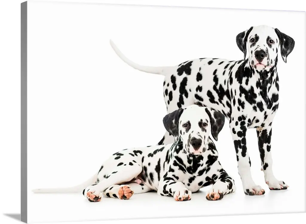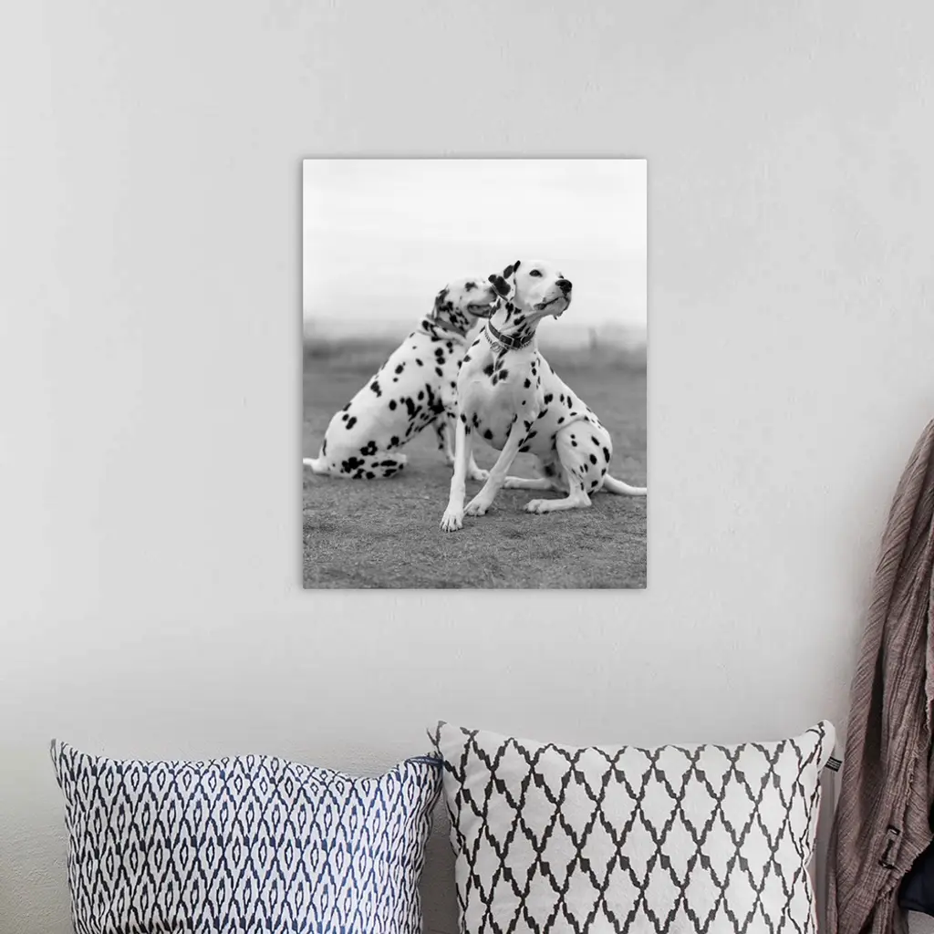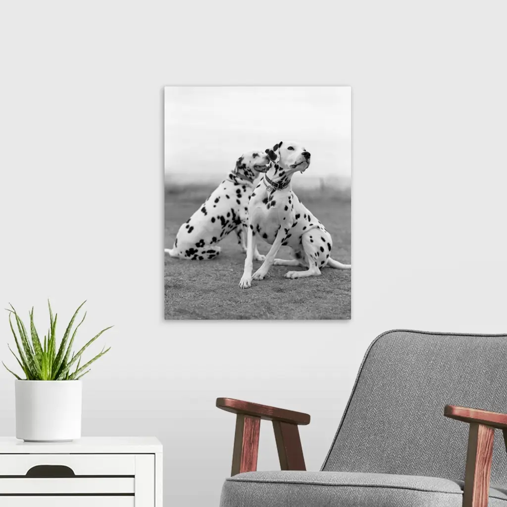 Two dalmatians sitting and watching. wall art for home and office decor. Discover canvas art prints, photos, mural, big canvas art and framed wall art in GreatBigCanvas.com's varied collections.
