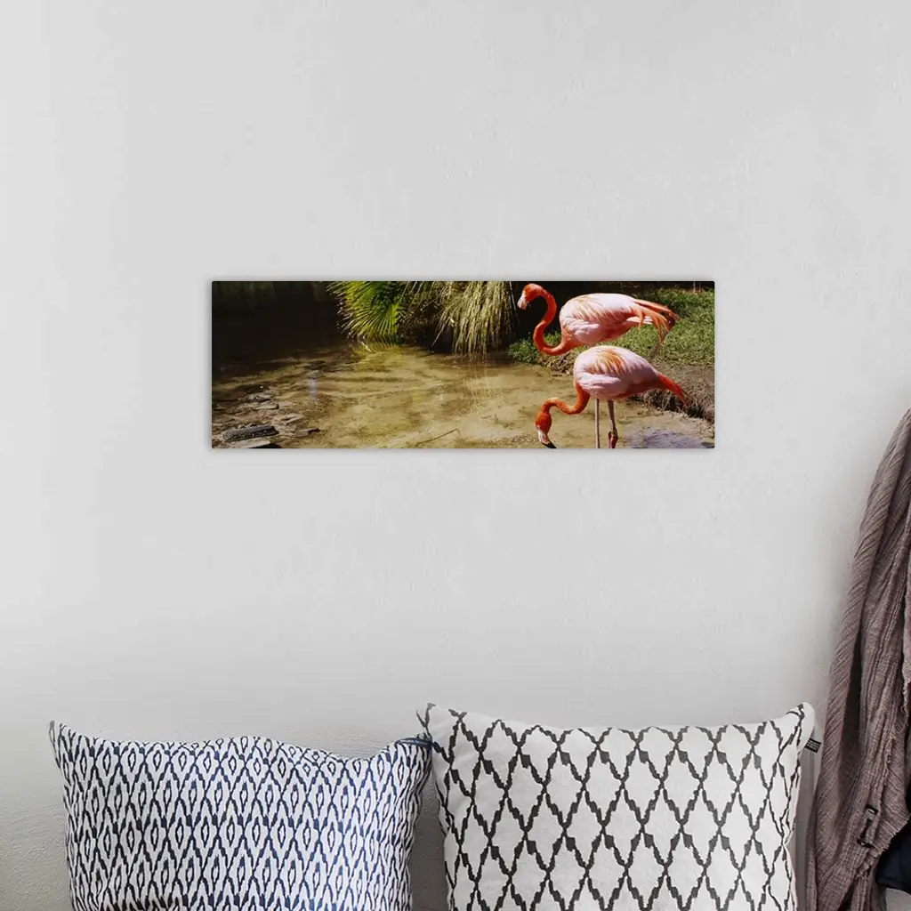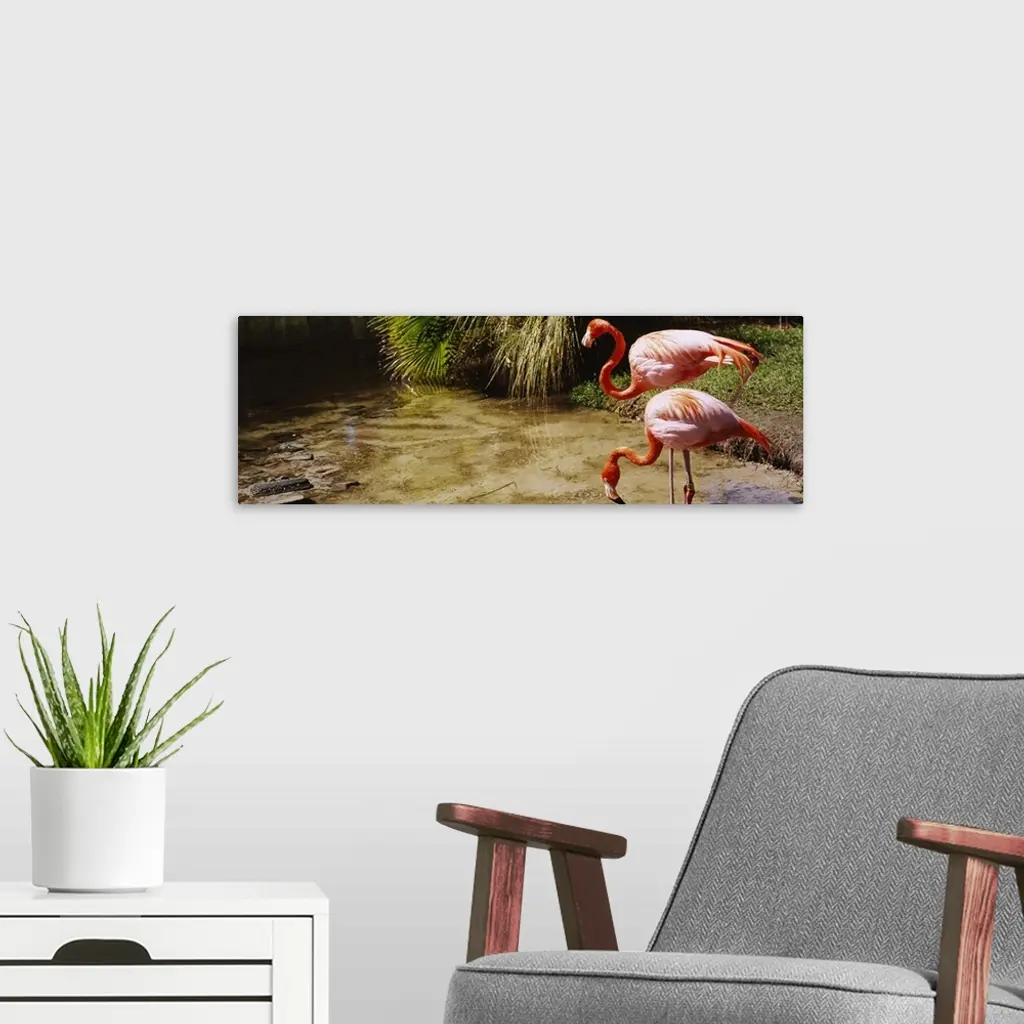 Two flamingos by a pond, Jungle Gardens, Sarasota, Florida wall art for home and office decor. Discover canvas art prints, photos, mural, big canvas art and framed wall art in GreatBigCanvas.com's varied collections.