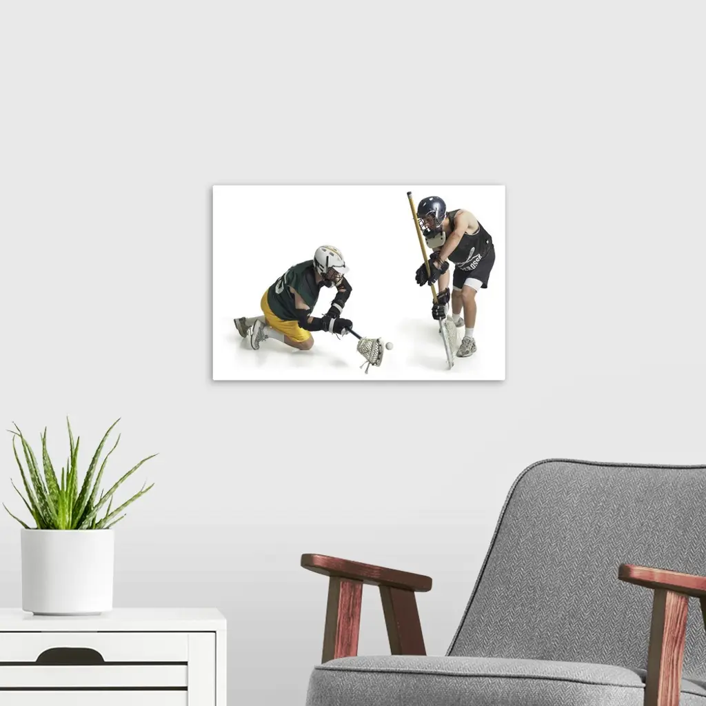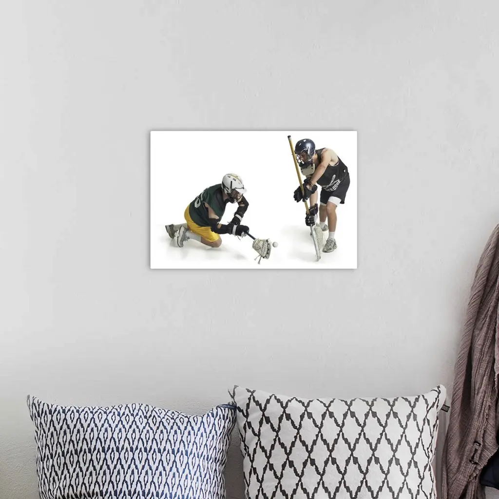 Two Male Lacrosse Players From Opposing Teams Confront Each Other
