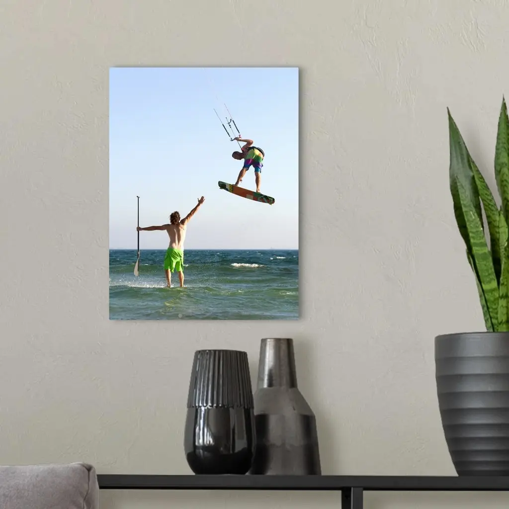 Two Men Off Valdevaqueros Beach Parasailing And Surfing, Tarifa, Andalusia, Spain wall art for home and office decor. Discover canvas art prints, photos, mural, big canvas art and framed wall art in GreatBigCanvas.com's varied collections.