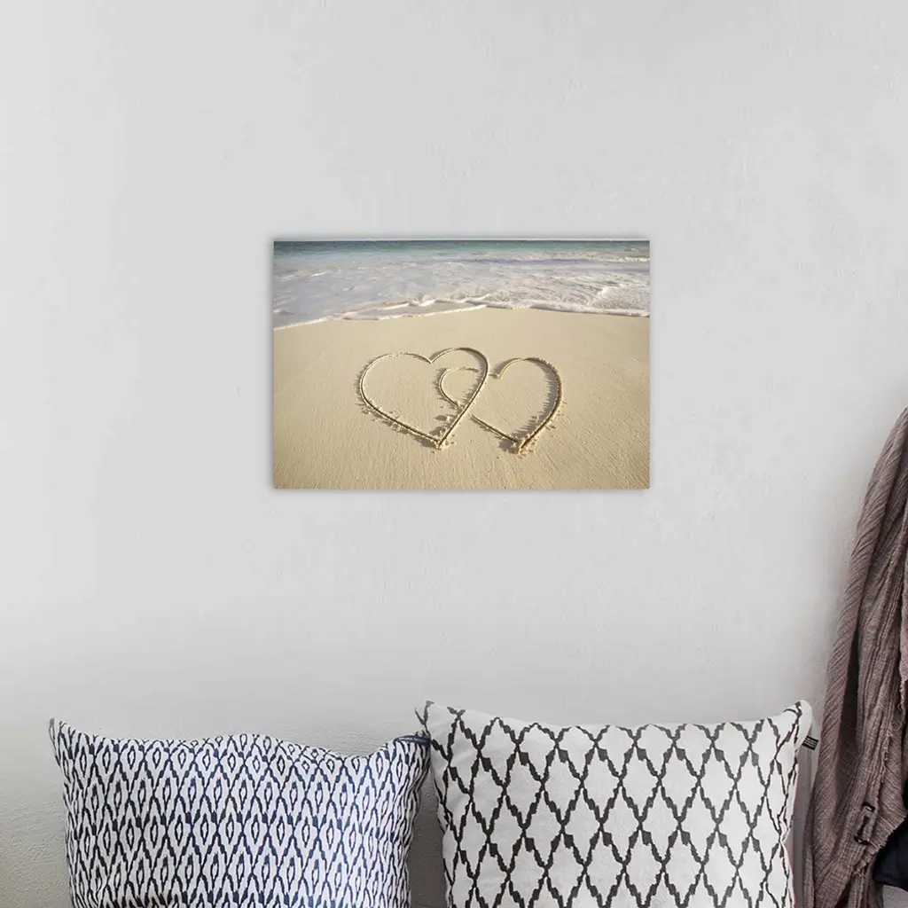Two overlying hearts drawn on the beach with incoming surf. wall art for home and office decor. Discover canvas art prints, photos, mural, big canvas art and framed wall art in GreatBigCanvas.com's varied collections.