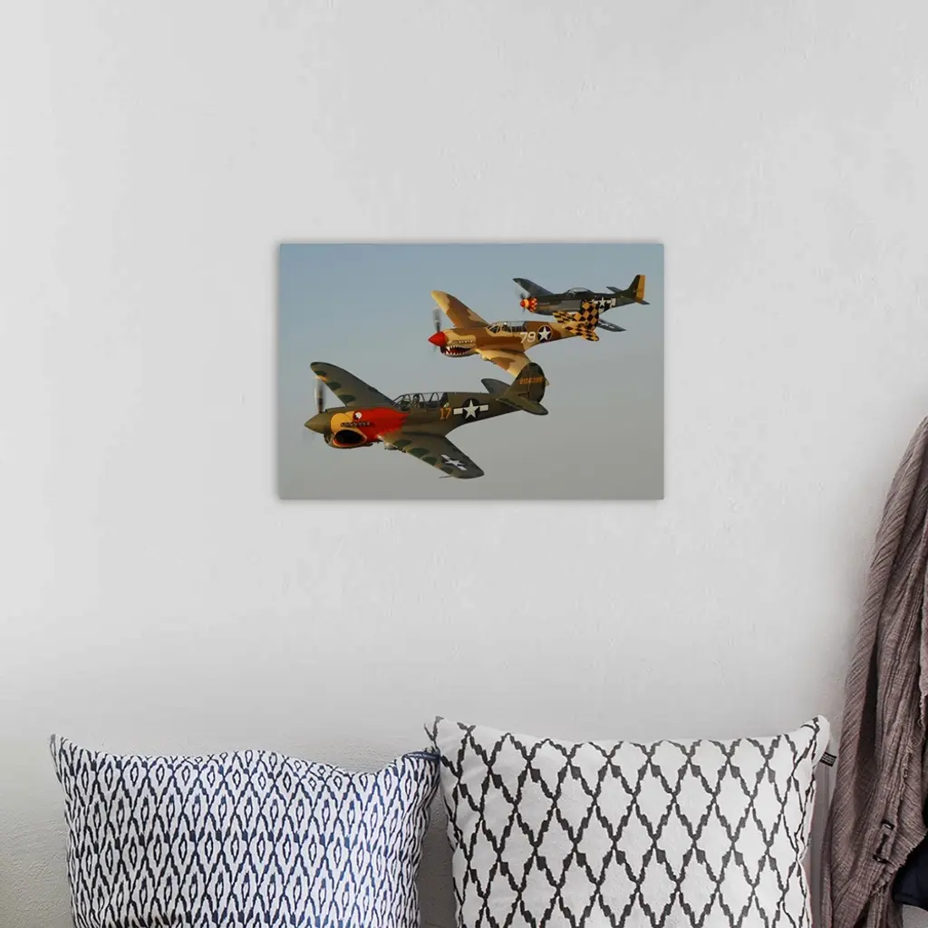 Two P-40 Warhawks And A P-51d Mustang Flying Over Chino, California