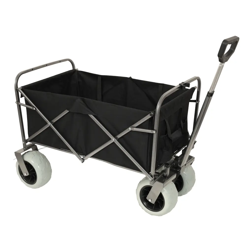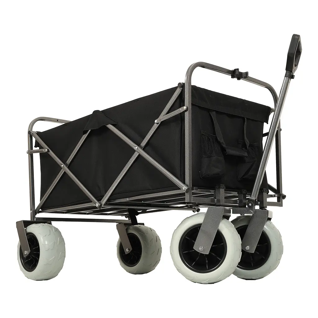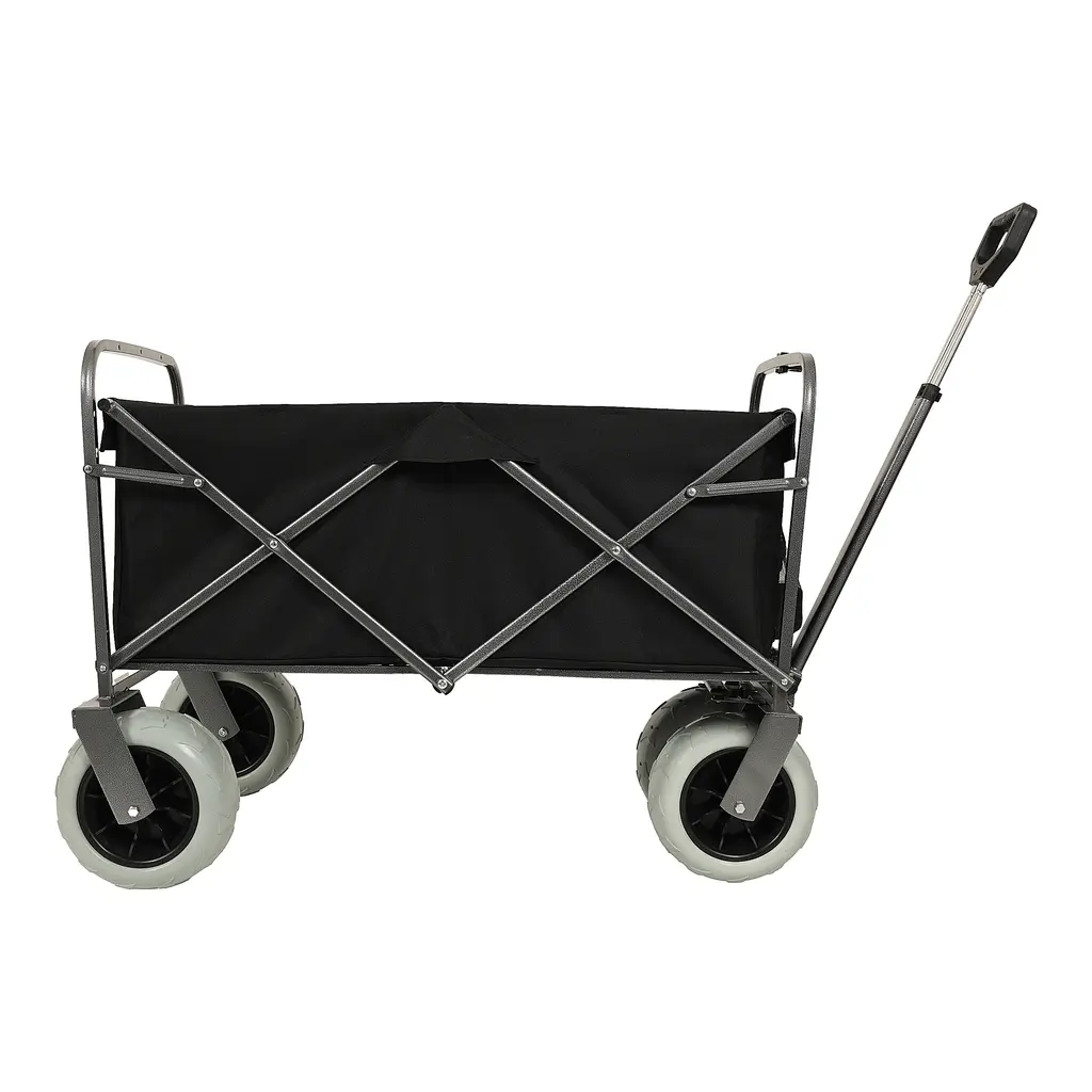 Dual-Purpose Foldable Wagons: Heavy-duty 500lb-capacity steel cart (9" all-terrain wheels, strap system) Compact 13.5lb lightweight wagon (6" 360° swivel wheels, trendy design). Shared collapsible storage & multi-surface versatility.The frame of the folding cart is made of high quality steel for reliability and durability.Capable of carrying camping gear, garden gardening items, sundries and other items.And it can free up space on both sides for pulling longer and wider loads.