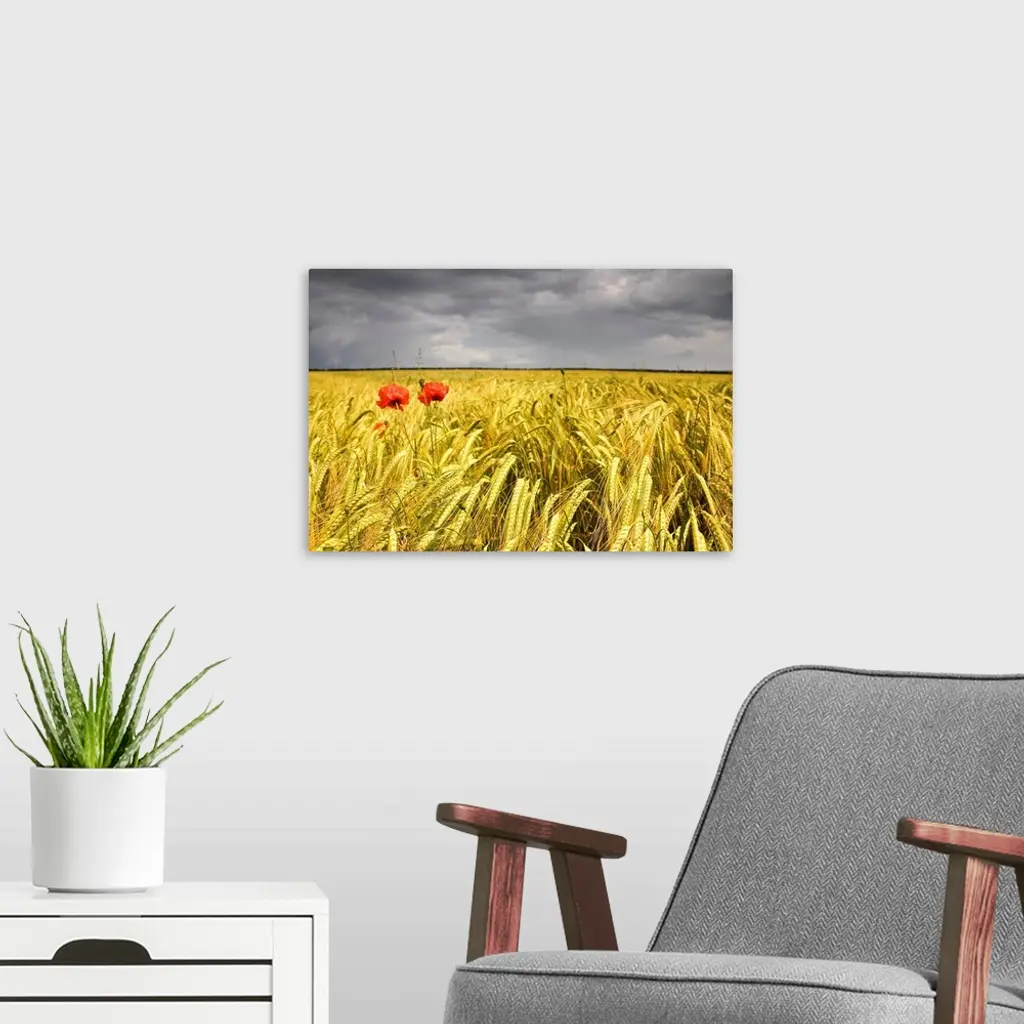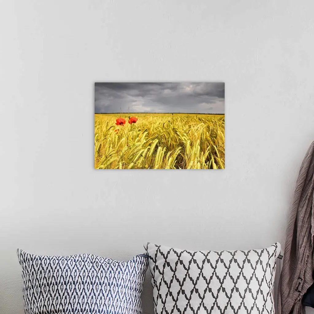 Two Red Poppies In Wheat Field wall art for home and office decor. Discover canvas art prints, photos, mural, big canvas art and framed wall art in GreatBigCanvas.com's varied collections.