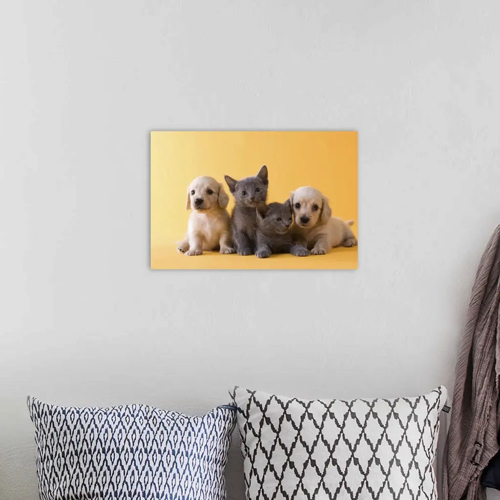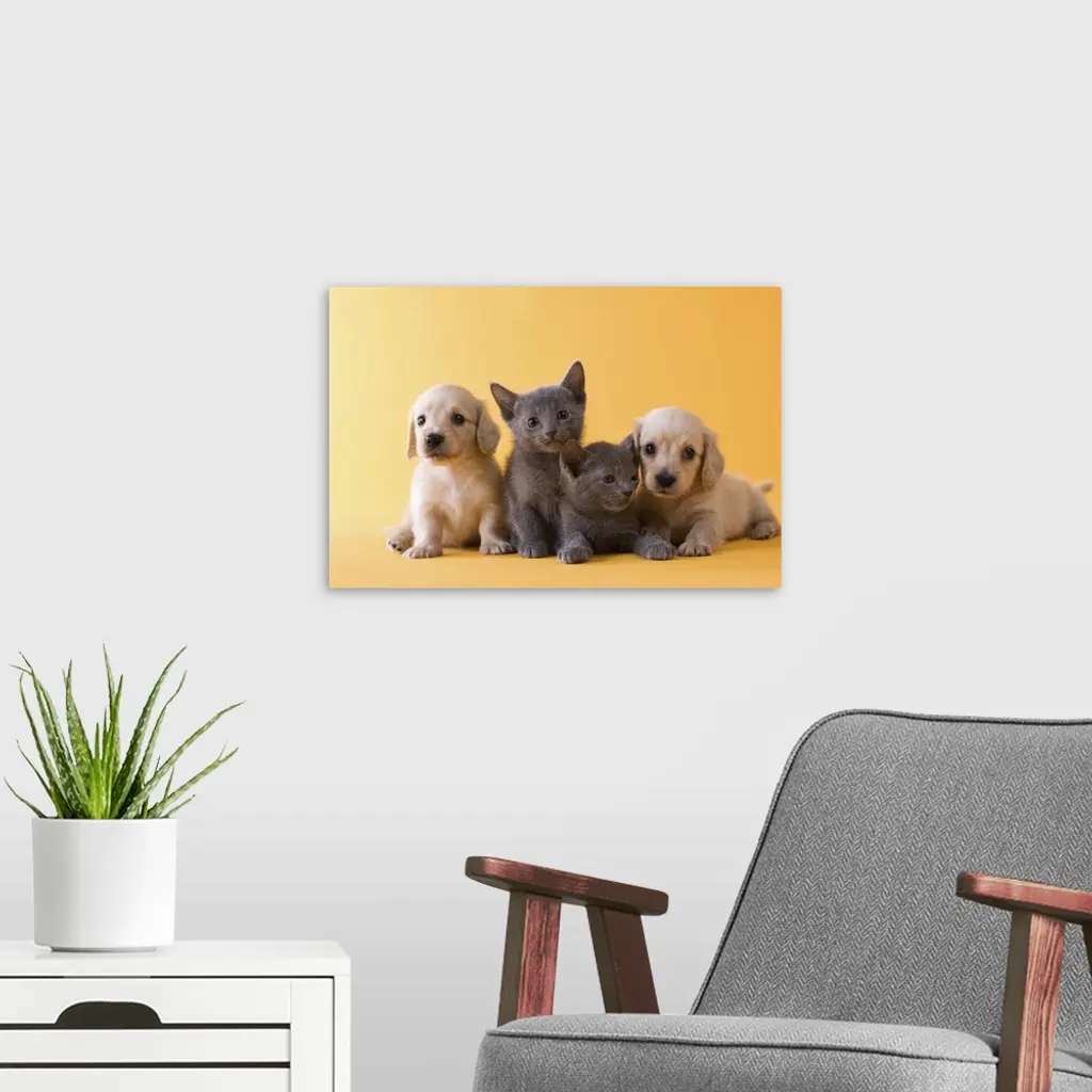 Two Russian Blue Kittens and Two Dachshund Puppies wall art for home and office decor. Discover canvas art prints, photos, mural, big canvas art and framed wall art in GreatBigCanvas.com's varied collections.