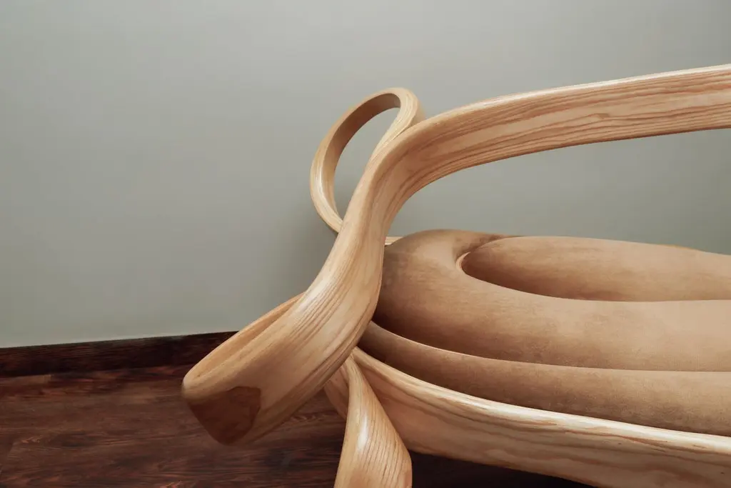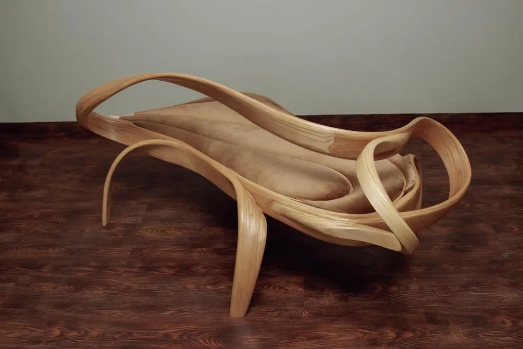 This piece features a unique design element where the main frame and the inner layers of wood converge to create the back-rest of the piece in a natural flow. The legs of the sofa seamlessly emerge from the frame. All these elements combined create a unique aesthetic which has rarely been achieved before. The Studio has taken its exploration of wood further with the Fluentum Series. This Series uses techniques and skills learned over the years to create works that embody details that are unique to the Studio's design aesthetic and the craft of bending wood. These techniques allow the natural flow of the wood to take the reins of design; therefore, no two pieces are exactly the same, making each piece unique.Other points worth knowing:- The design may vary slightly from the piece in the pictures since each piece is handmade.- You can choose from an array of finishes.- The dimensions of the piece are customizable.