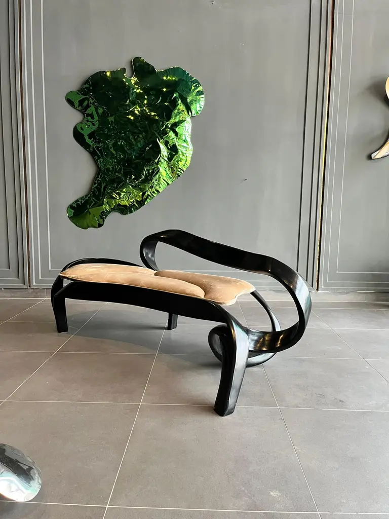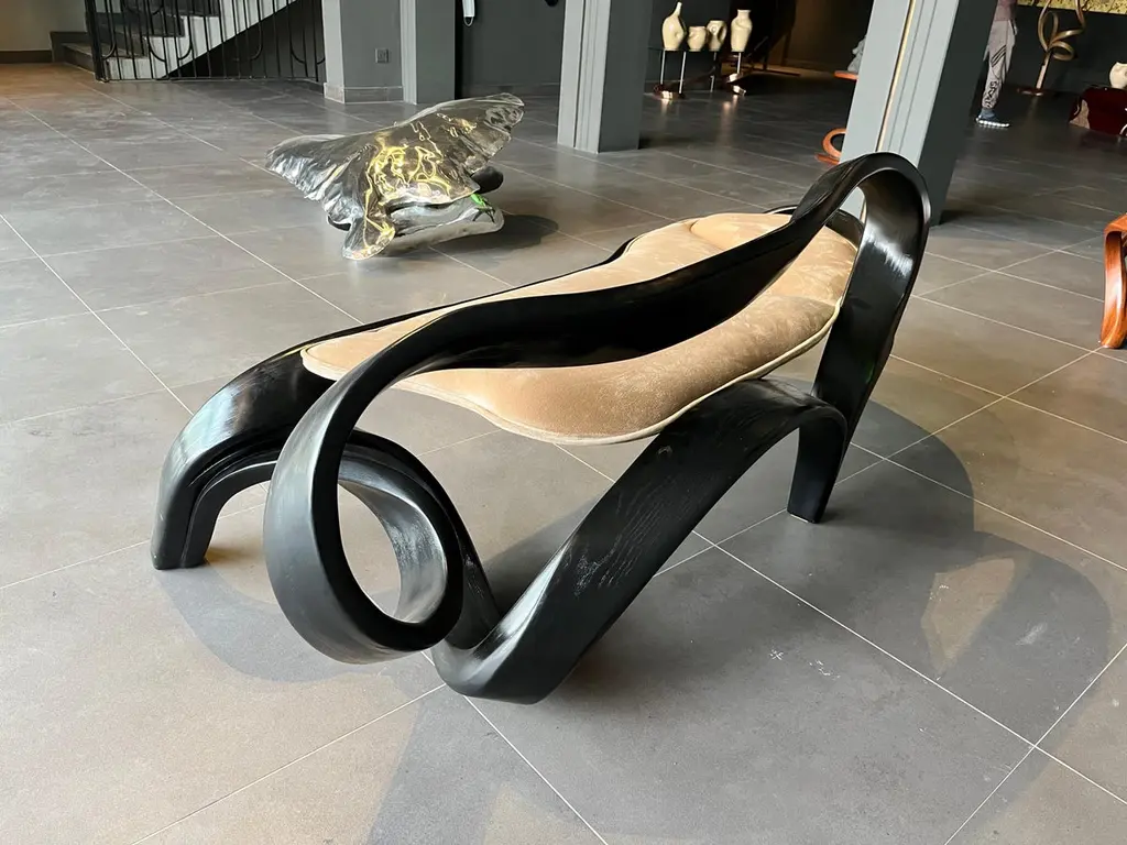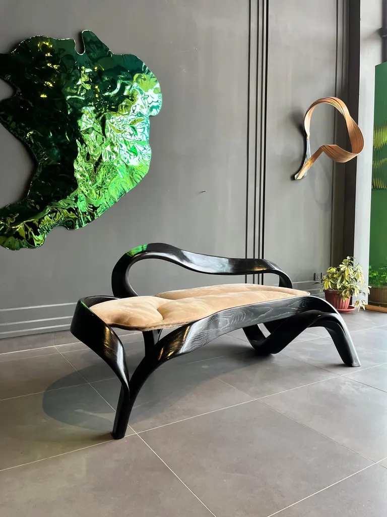 The Two Seater No. 2, a chassis designed by Raka Studio using an ancient Japanese technique of bending wood. The design is inspired by the organic flows of nature and the natural shapes that occur in a natural landscape. Each design element seamlessly flows out from one end and merges into another; creating a unique aesthetic. The whole piece is handcrafted and is an expression of the studio's unique design aesthetic. This piece can be placed in a minimal or classical setting and will still blend in with space, yet creating a statement of its own. The Studio has taken its exploration of wood further with the Fluentum Series. This Series uses techniques and skills learned over the years to create works that embody details that are unique to the Studio's design aesthetic and the craft of bending wood. These techniques allow the natural flow of the wood to take the reins of design; therefore, no two pieces are exactly the same, making each piece unique.Other points worth knowing:- The design may vary slightly from the piece in the pictures since each piece is handmade.- You can choose from an array of finishes.- The dimensions of the piece are customizable.