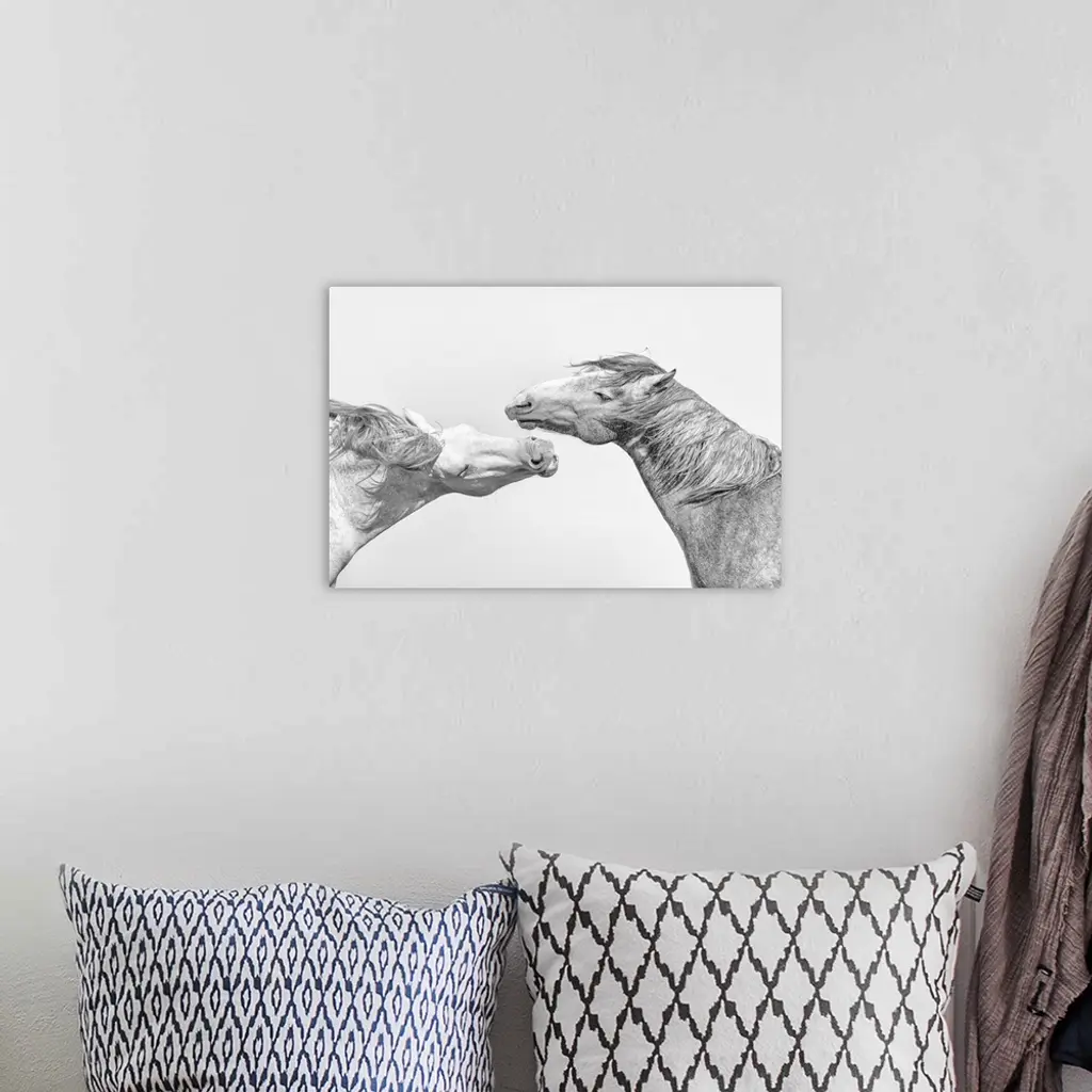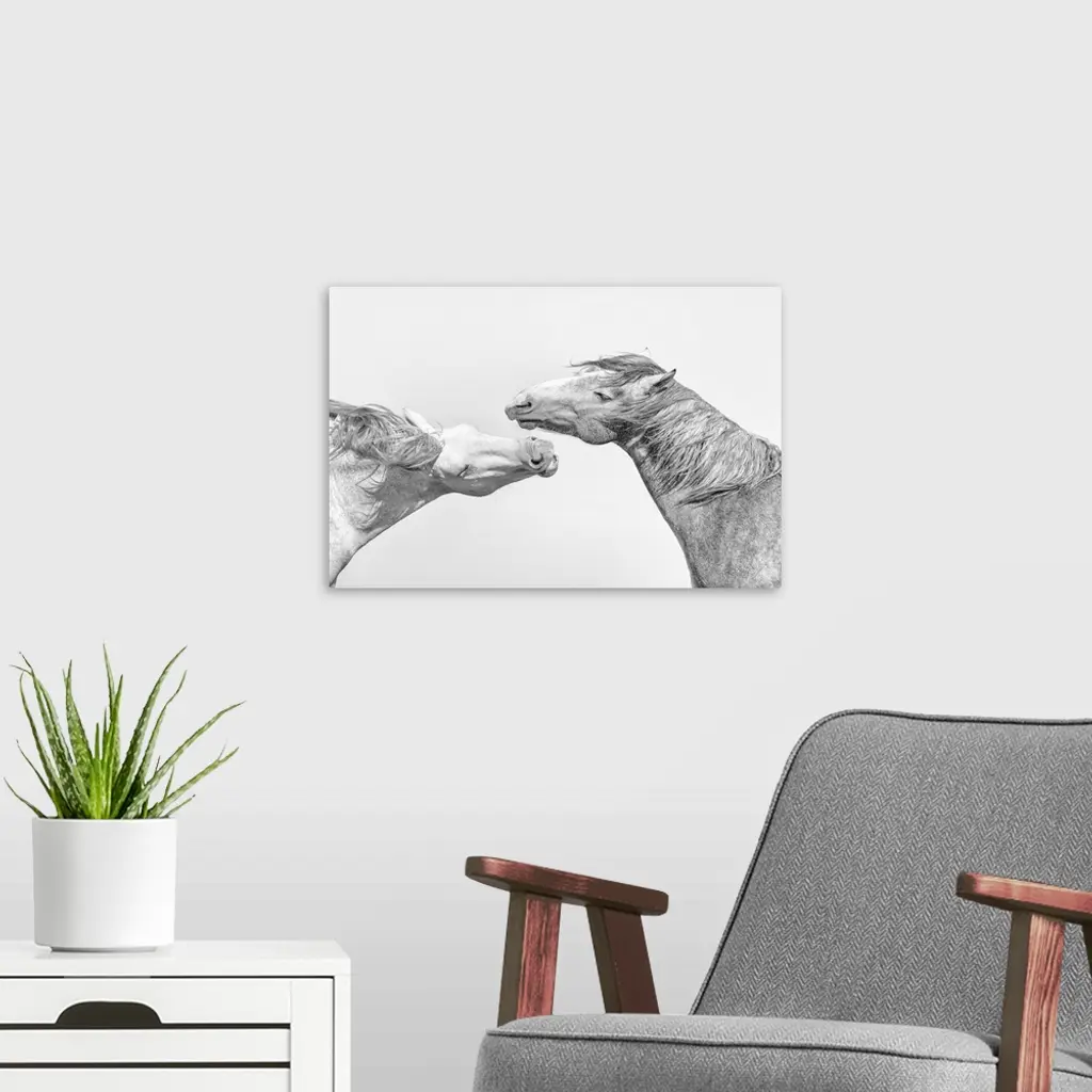 Europe, France, Provence-Alpes-Cote d'Azur, Bouches-du-Rhone, Camargue, Saintes-Maries-de-la-Mer, Two stallions spar in the Camargue