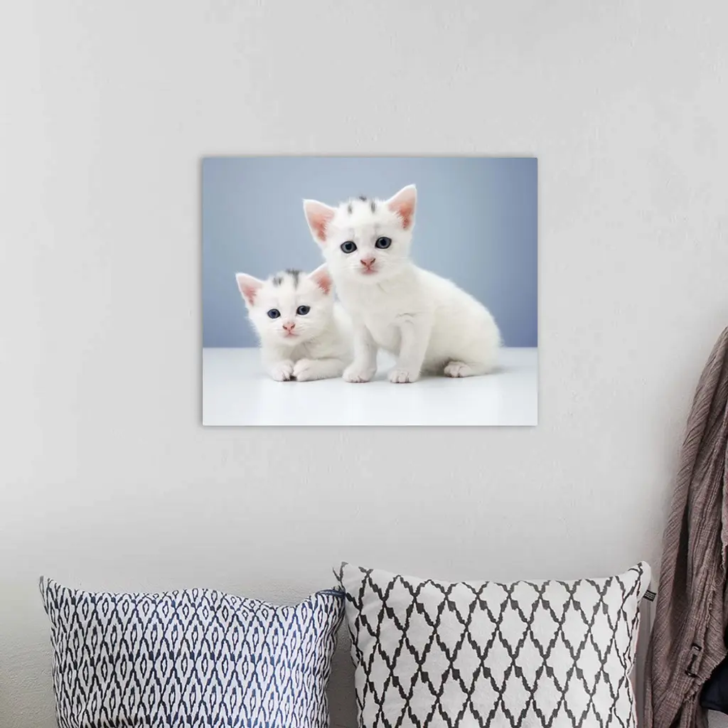 Two Very Young White Kittens Stare Inquisitively At The Camera