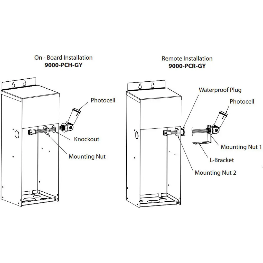 This Photocell sensor installs into a WAC Landscape Lighting power supply and automatically turns the system on at dusk and off at dawn. Photocell sensors are available in plug-in (SKU 9000-PCH-GY) connecting directly on the power supply and remote (SKU 9000-PCR-GY) with a 10ft cable that extends placement of the photocell sensor up to 10ft away from the power supply when the power supply is installed in an area that does not receive direct sunlight. WAC Landscape Lighting power supplies are manufactured in 75W (SKU 9075-TRN-SS), 150W (SKU 9150-TRN-SS), 300W (SKU 9300-TRN-SS), and 600W (SKU 9600-TRN-SS) sizes.