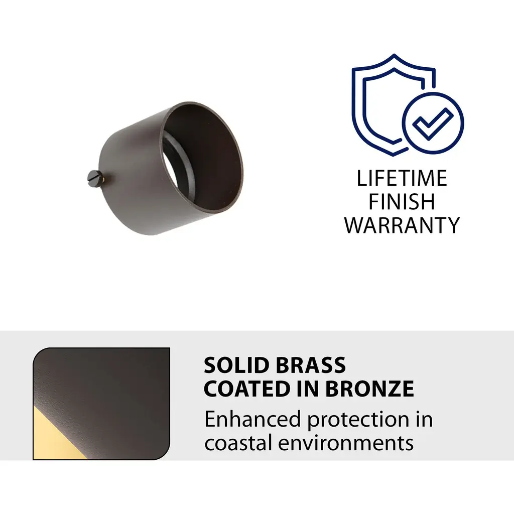 A snoot reduces beam angle and glare by increasing the cutoff angle of the light. Sized to fit mini, standard, or grand accent sizes, order according to size of accent light. Available in Bronze or Brass, replaces the existing cowl that comes factory installed. The snoot can be swapped by loosening the thumb screw that is included on the snoot.
