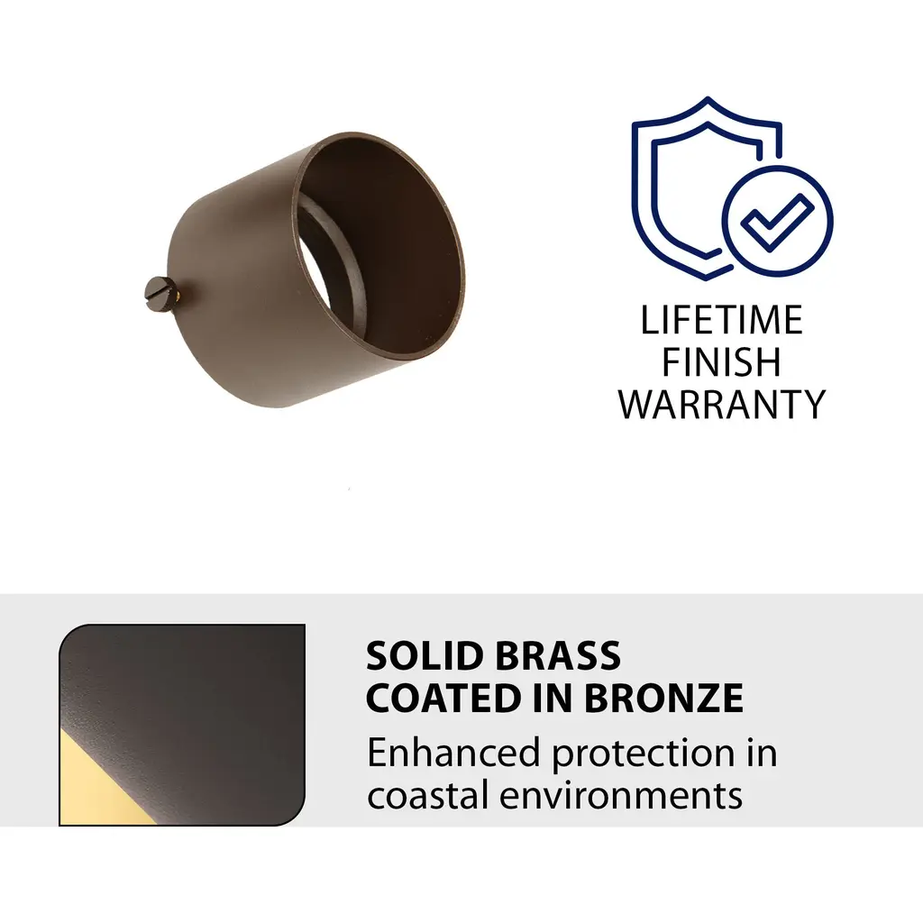 A snoot reduces beam angle and glare by increasing the cutoff angle of the light. Sized to fit mini, standard, or grand accent sizes, order according to size of accent light. Available in Bronze or Brass, replaces the existing cowl that comes factory installed. The snoot can be swapped by loosening the thumb screw that is included on the snoot.