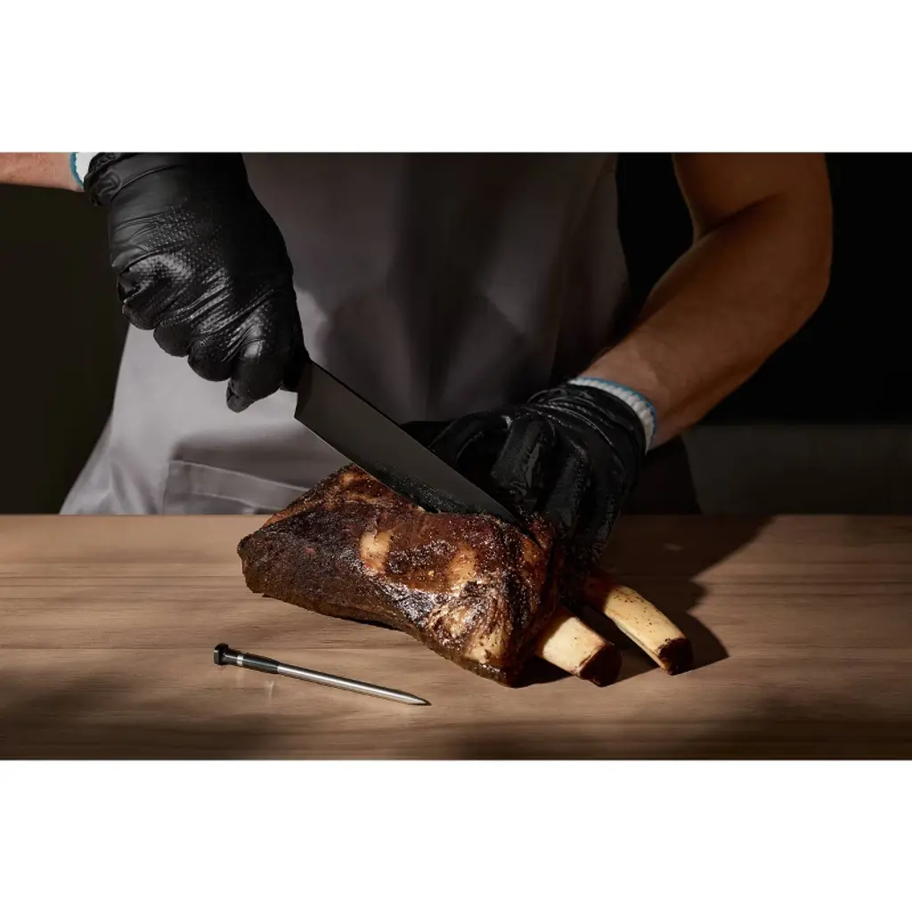 The Typhur Sync is the most reliable wireless thermometer on the market, with a Bluetooth 5.3 connection for synchronized temperature detection over long distances (400 feet in open spaces with light obstacles, 135 feet in enclosed spaces). Temperature detection in “Sync” is now a reality. The Sync combines a compact monitor, charging case, and Bluetooth/WiFi bridge that lets you stay connected and control your cooking remotely. It also calculates cooking and resting times to help you plan your meals.