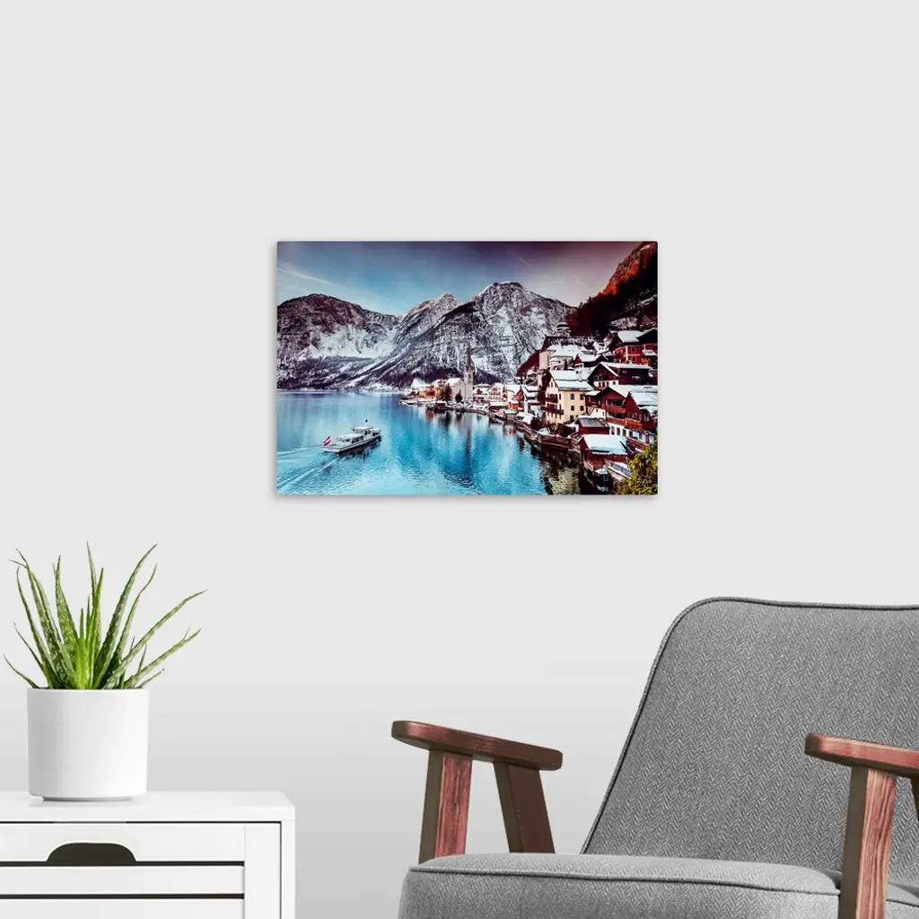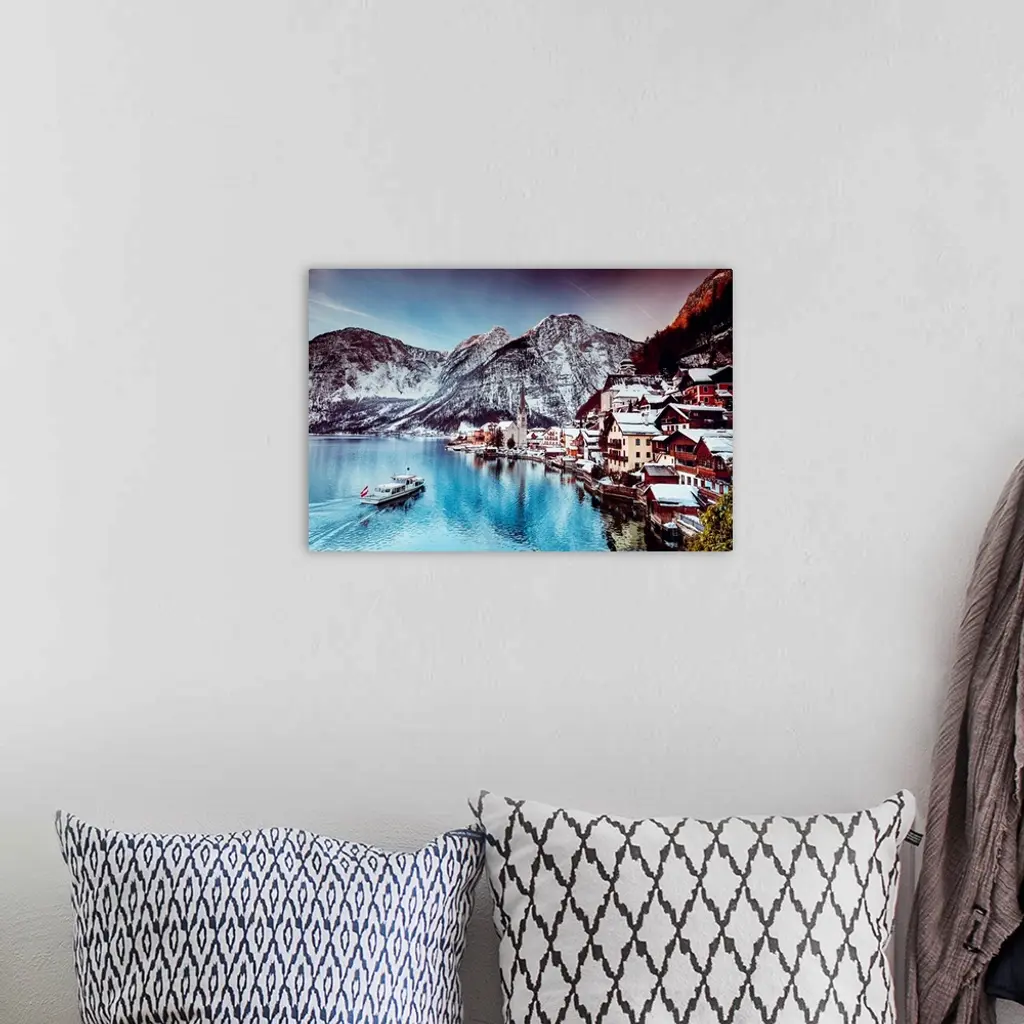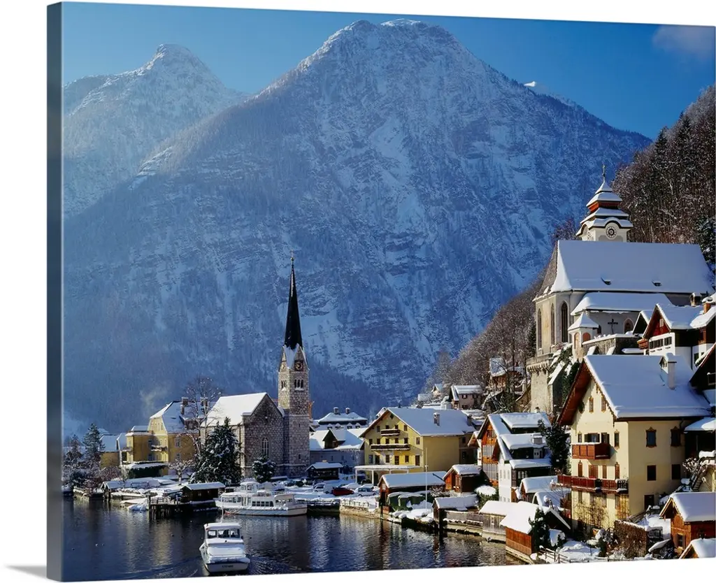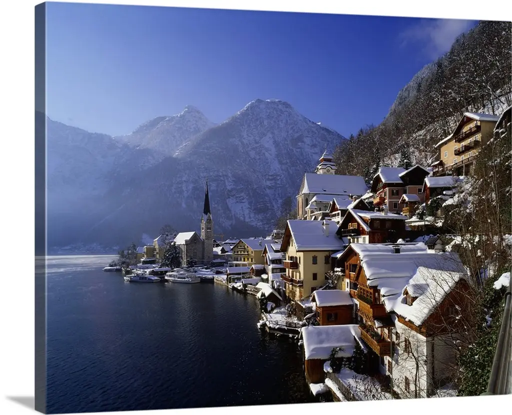 Typical Village Called Hallstatt Con The Hallstatter See, Sunrise, Houses Reflecting