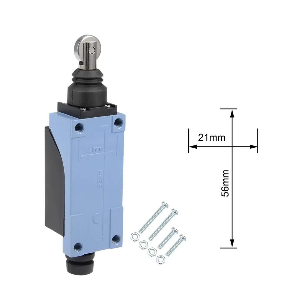 Specifications:Product Name: Limit SwitchModel: TZ-8112Actuator Type: Roller Plunger TypeRated Voltage:AC-15: (Ue/Ie) 250V/6ADC-13: (Ue/Ie) 220V/0.3AContact Configuration: 1NC+1NOMounting Hole Size: M5Mounting Hole Distance: 56 x 21mm / 2.2" x 0.83" (L*W) Note:The roller plunger can be operated in a wide range by employing a cam, Dog, cylinder, or auxiliary actuator.Position detection accuracy is high. Operating Characteristics:OF max.: 900gRF min.: 150gPT max.: 1.5mmOT min.: 4mmMD max.: 1mmOP: 37+/-0.8mm Features: Product Contents:2 x Limit Switch with mounting screws