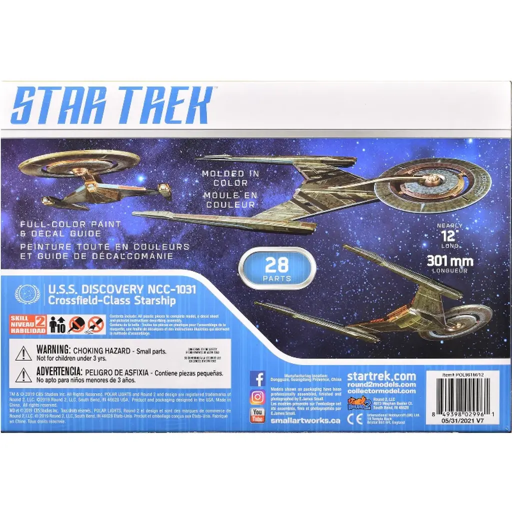 Brand new scale plastic snap model kit of U.S.S. Discovery NCC-1031 Spacecraft "Star Trek: Discovery" (2017-2024) TV Series (Skill 2) 1/2500 plastic snap model kit by Polar Lights. Brand new box. Colorful decal artwork. Vintage style packaging. Officially licensed product. Contains 28 detailed parts. Includes base with ball joint. Full color paint and decal guide. Paint and cement NOT required. Snap-together model for easy assembly. Manufacturer's original unopened packaging. Assembled model approximately 12 inches long. Parts molded in COLOR, unless otherwise indicated.