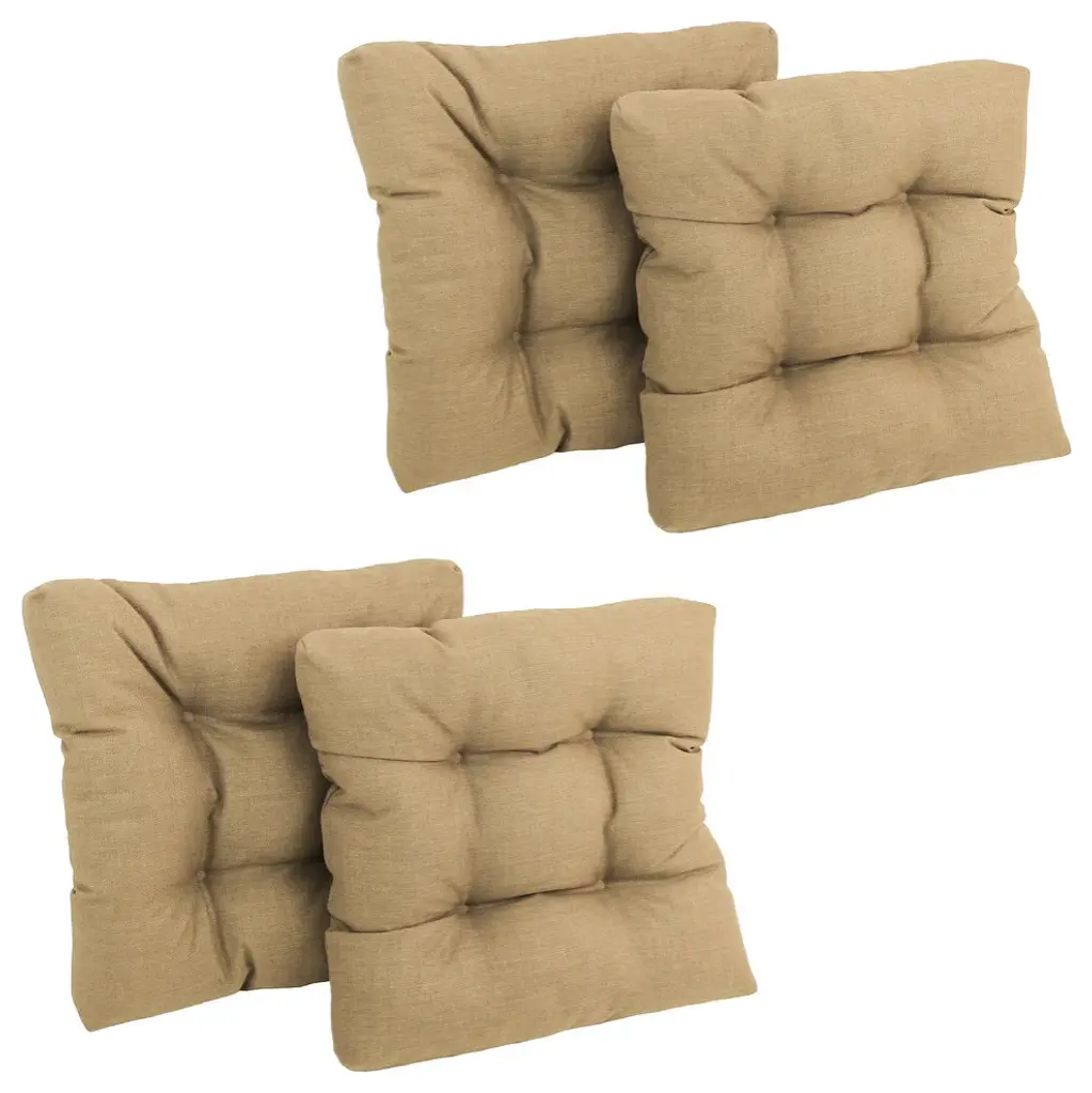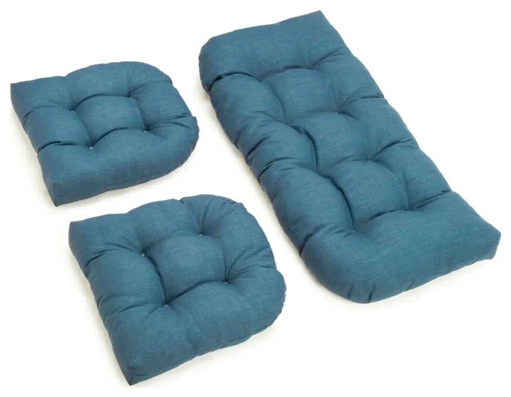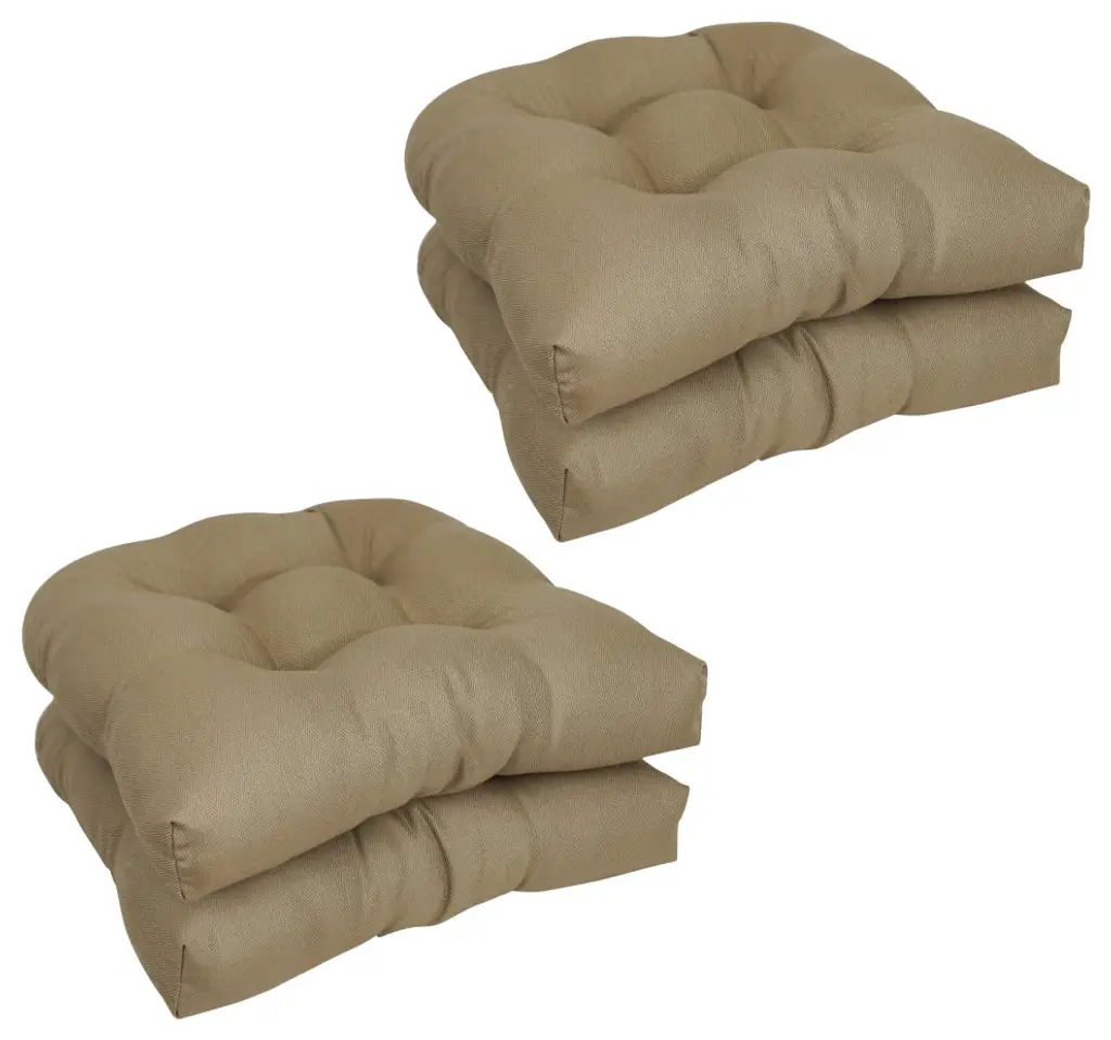 Outfit your outdoor ensemble with the comfy and stylish U Shaped Tufted cushions. This three-piece set features deep tufting and durable outdoor upholstery that withstands the elements. With one love seat cushion and a pair of U-shaped chair cushions, the U Shaped Tufted set is well equipped to add a layer of softness to all your patio furniture.3-piece cushion set2 U-shaped chair cushions and 1 love seat cushionCovered in outdoor fabricTufted designColor: SandMaterial: Cotton, polyesterChair cushion dimensions: W 19" x D 19" x H 5"Love seat dimensions: W 42" x D 19" x H 5"