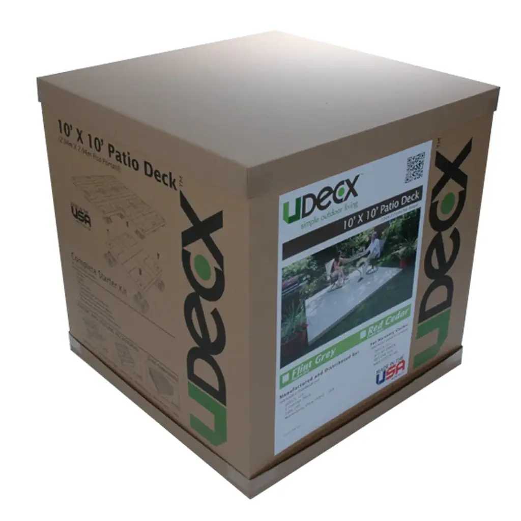 The UDECX 100 sq. ft. patio decking kit features a completely do-it-yourself set of components. The patio deck can be installed without a contractor in minimal time with just a few common tools. The system allows for an array of setup configurations so you can be creative beyond your original design or setup.This patio deck starter kit features a completely do-it-yourself set of components. Included is everything you need to set up your brand new deck in an afternoon - no contractors, no permits, and no hassle! The component-based system allows you to reconfigure your deck anytime - so you can be creative beyond your original design or setup. All components are also available for individual sale.Highlights
