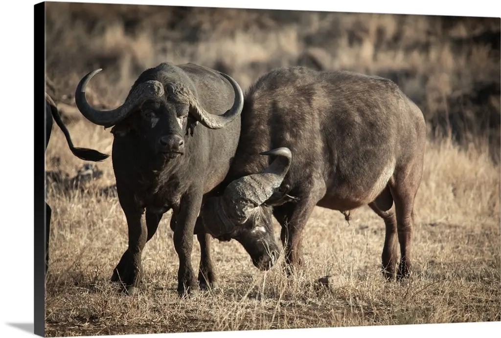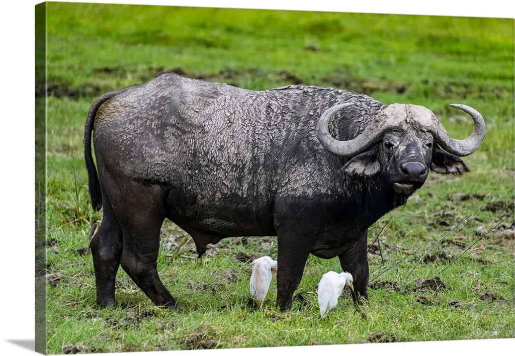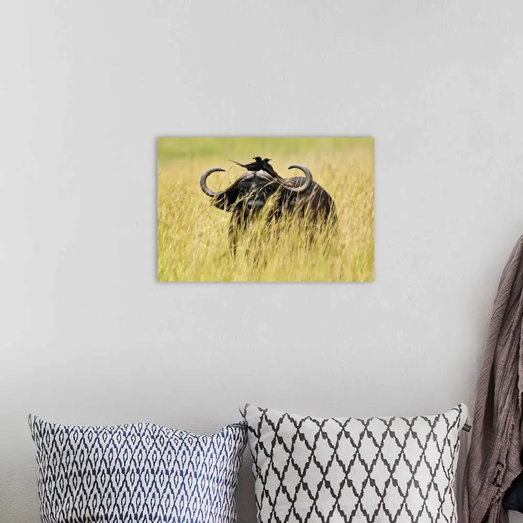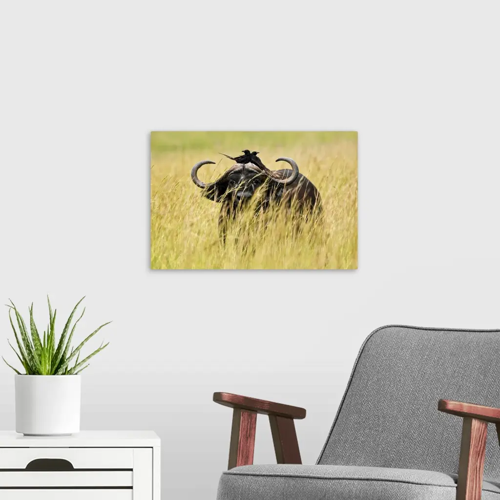 Uganda, Murchison Falls National Park, Buffalo In High Grass With Two Crows