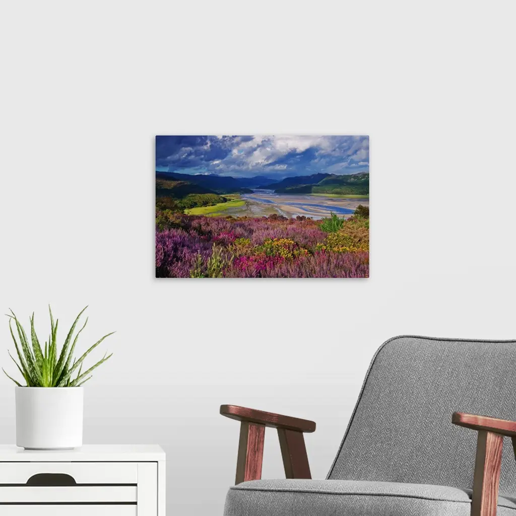 UK, Wales, Barmouth, View of the Mawddach River Estuary wall art for home and office decor. Discover canvas art prints, photos, mural, big canvas art and framed wall art in GreatBigCanvas.com's varied collections.