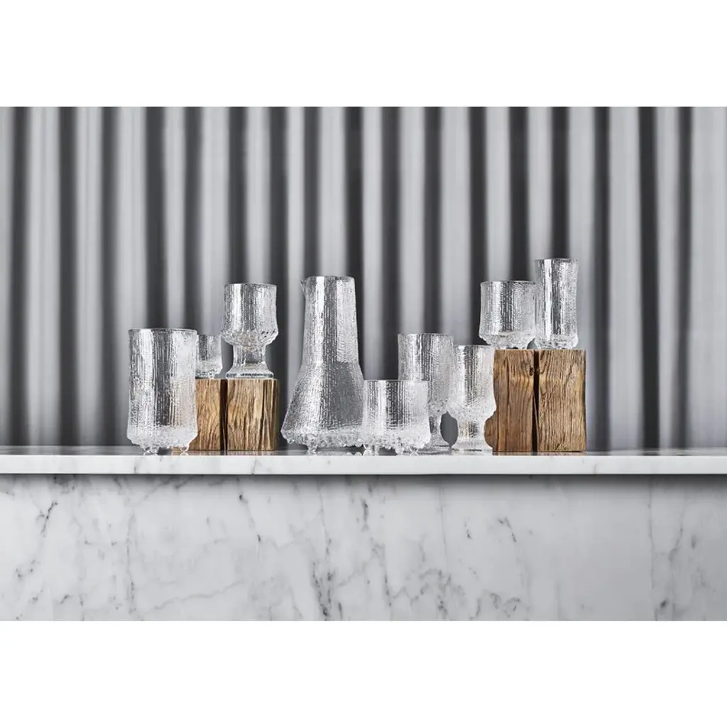 Ultima Thule goblets are part of Iittala’s iconic glassware range, which was created in 1968 by Tapio Wirkkala. The inspiration for the collection was found in the melting spring ice of Northern Finland. Ultima Thule glasses are mouth-blown at the Iittala glass factory in Finland. In 1969, the Finnish airline Finnair chose Ultima Thule for its new route from Helsinki to New York, and the glassware is still used in Finnair’s Business Class. Ultima Thule crystallizes the expressive power of Finnish glass design, and this distinctive classic played a key role in Iittala’s international breakthrough. Over time, Ultima Thule has become one of Iittala’s most popular glassware ranges, exemplifying Wirkkala’s belief that the simplest objects often require the most work.