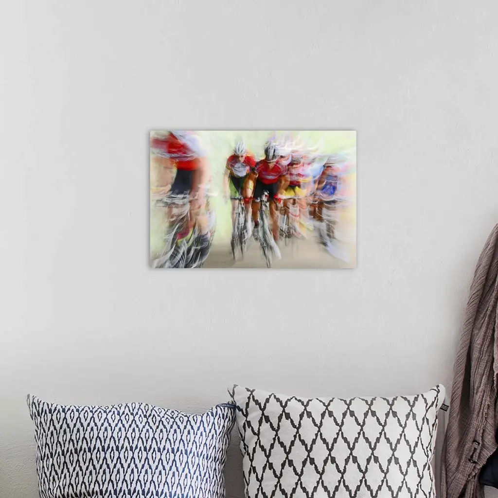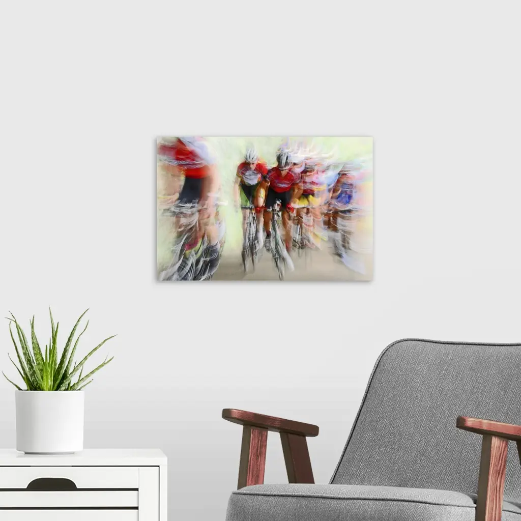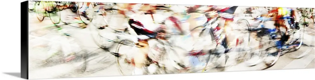 Action photograph of a cyclists in a blur of fast motion.