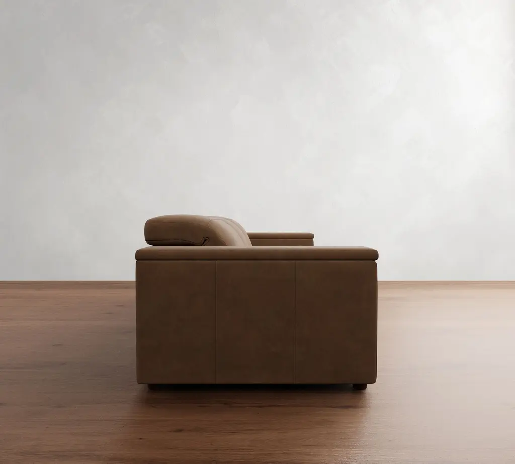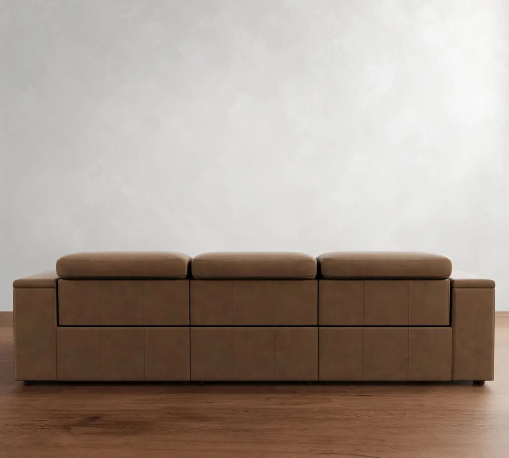 The Ultra Lounge Collection provides personalized comfort with powered motion control to position each seating component independently – headrest, footrest and right and left armrests. Designed to save floor space, this square-arm reclining sectional pulls forward as it tilts back to avoid touching the wall. Upholstered in rich leather, it’s the perfect spot for relaxing, watching a movie or kicking back with family and friends.