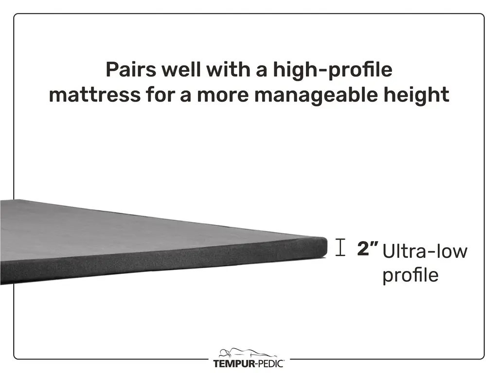 Engineered to support your Tempur-Pedic® mattress — and upholstered in matching grey fabric — with a perfectly solid, flat surface the 2” Ultra-low is perfect for platform-style bed frames. Place your foundation in a bed frame.