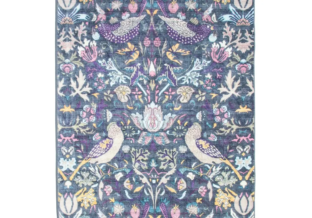 Tufted, premium ultra soft 1/4" pile with non-slip padded backing.4' x 6'NewOrigin: ChinaField Color: GrayBorder Color: GrayAccent Colors: Pink, Purple, Blue, Ivory, Yellow, TanTufted faux silk pile on a non-slip polyester foundation.