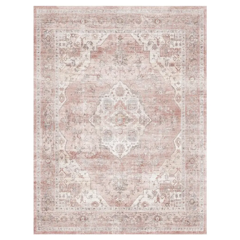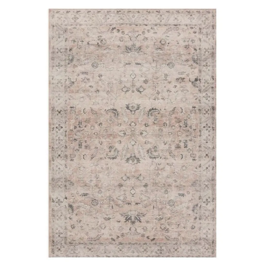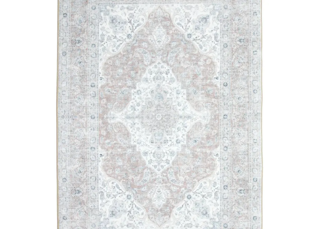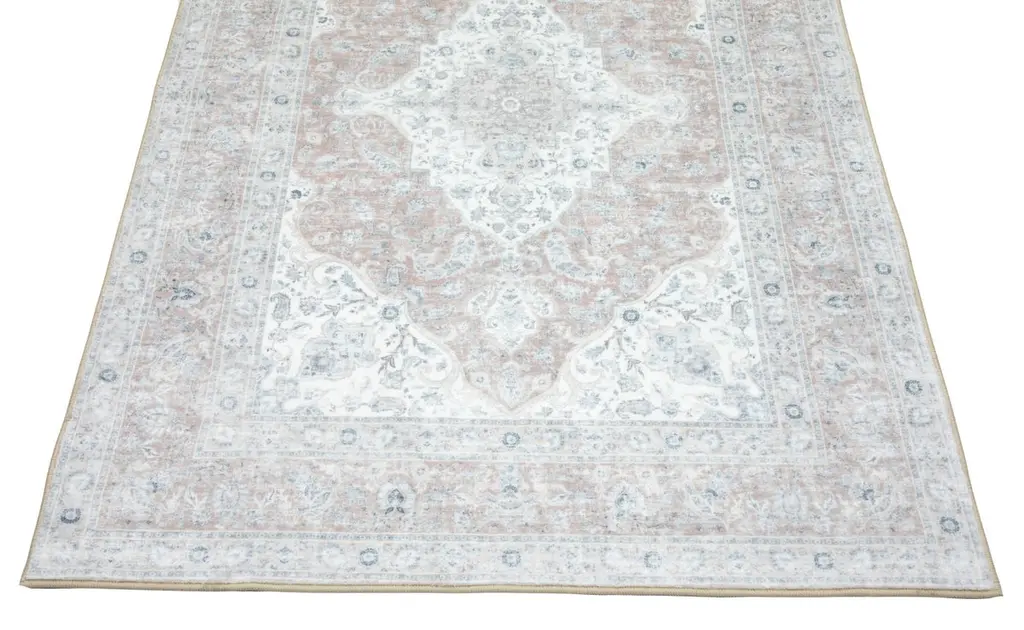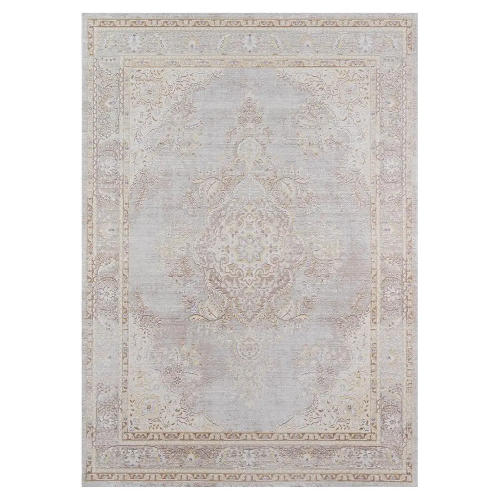 Tufted, premium ultra soft 1/4" pile with non-slip padded backing.6' x 9'NewOrigin: ChinaField Color: IvoryBorder Color: TanAccent Colors: Gray, Beige, Pale Red, Pale BlueTufted faux silk pile on a non-slip polyester foundation.