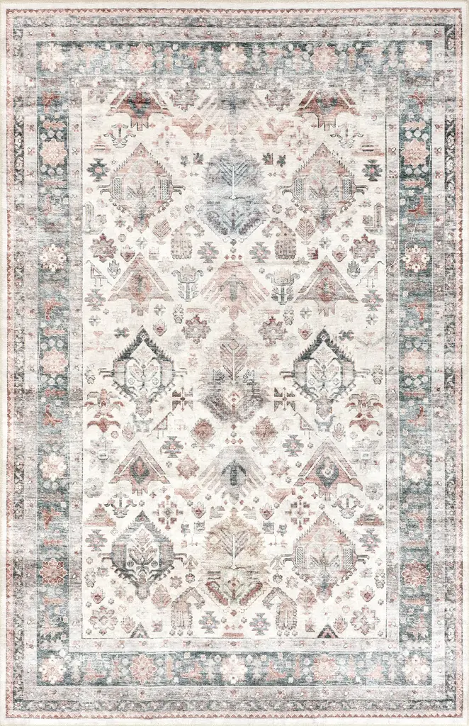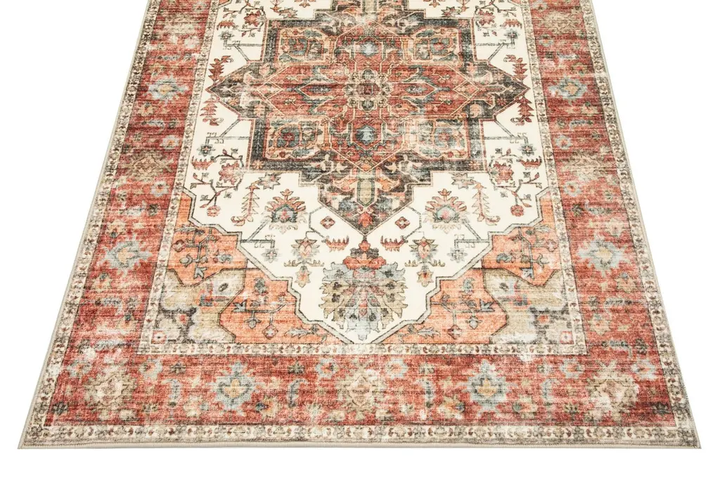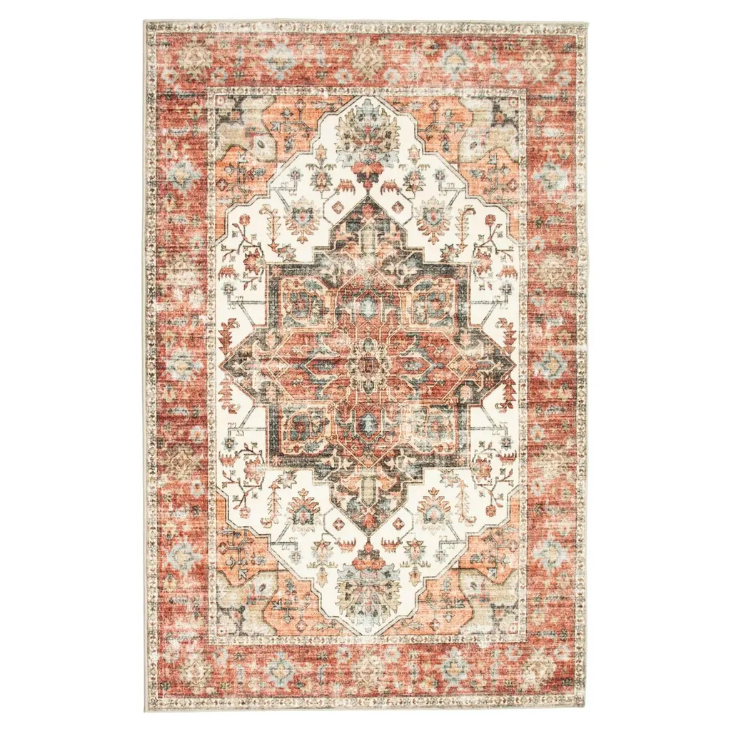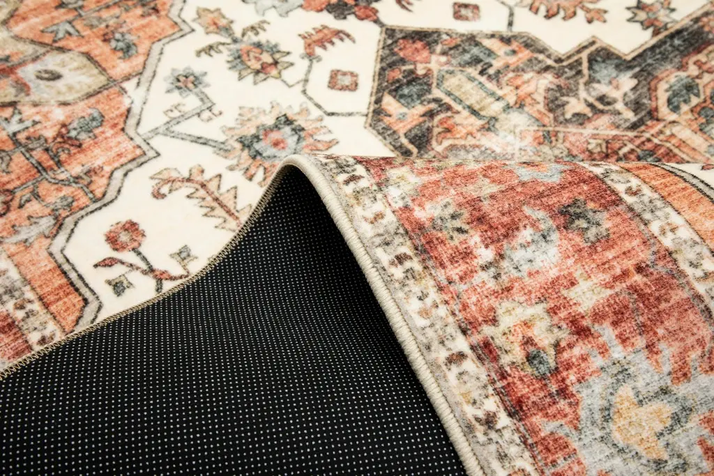Tufted, premium ultra soft 1/4" pile with non-slip padded backing.6' x 9'NewOrigin: ChinaField Color: IvoryBorder Color: RedAccent Colors: Black, Gray, Orange, BrownTufted faux silk pile on a non-slip polyester foundation.