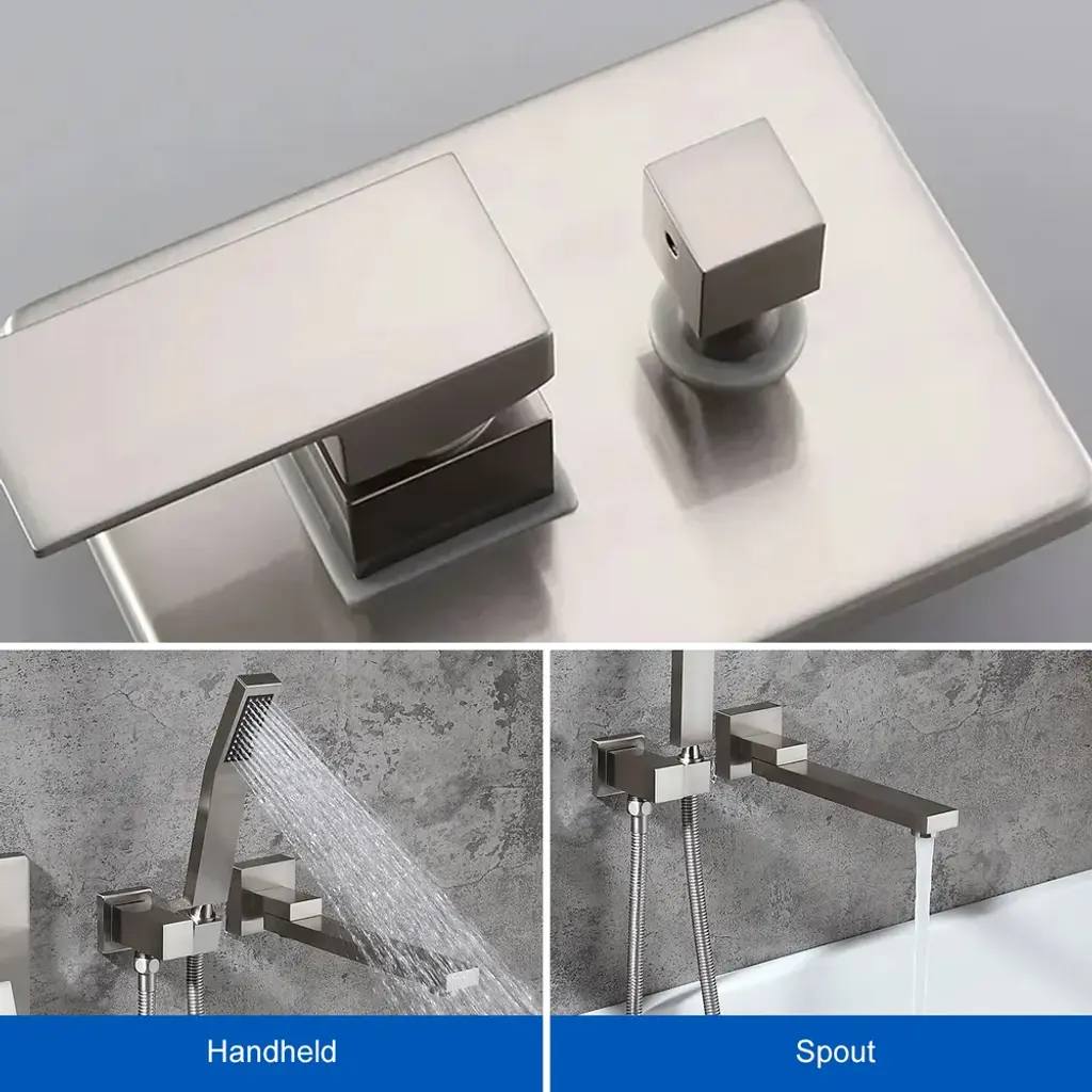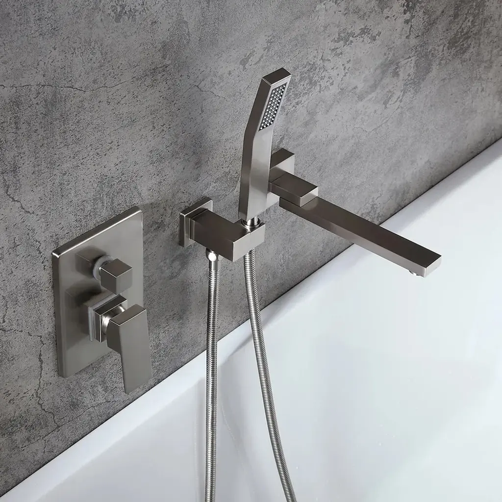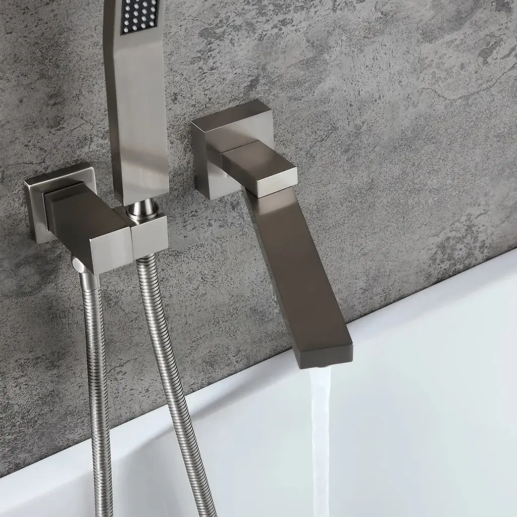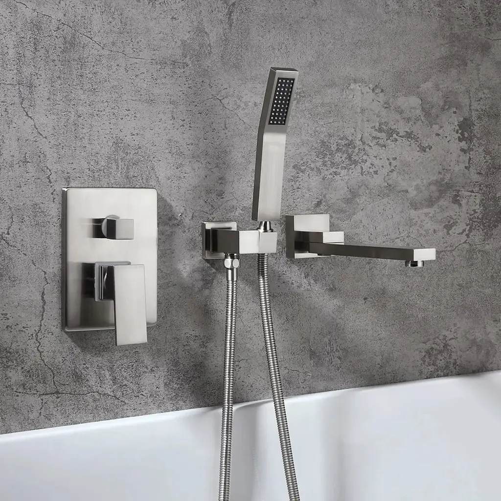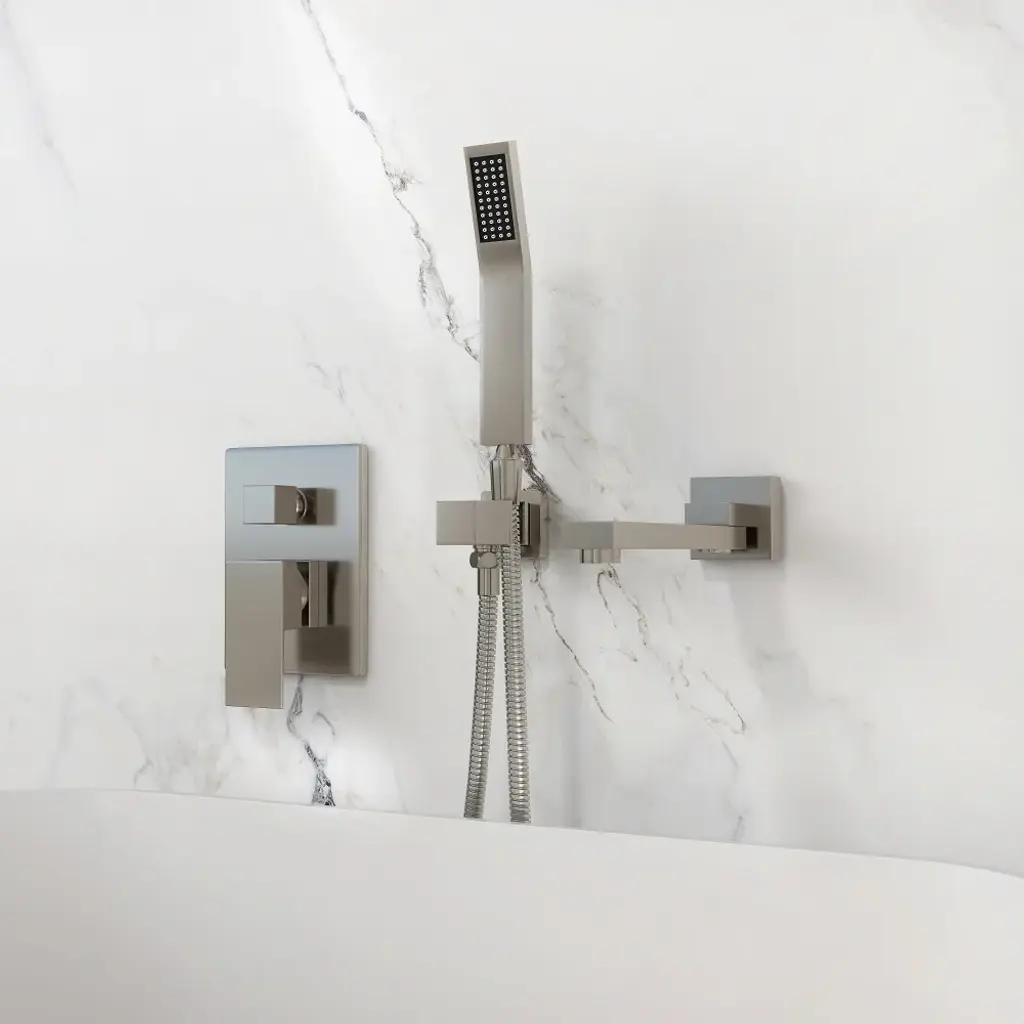 Ultramodern Brushed Nickel Wall Mounted Swirling Tub Filler Faucet With Hand Shower