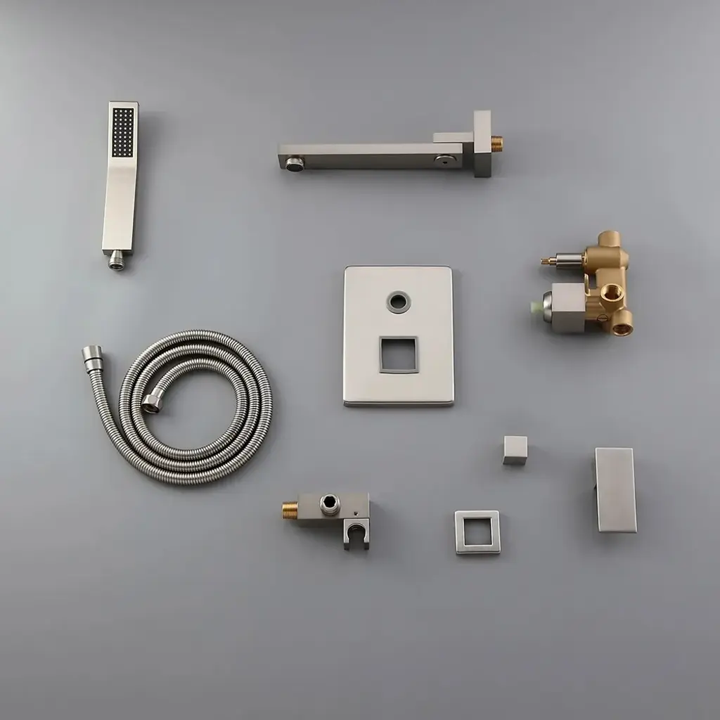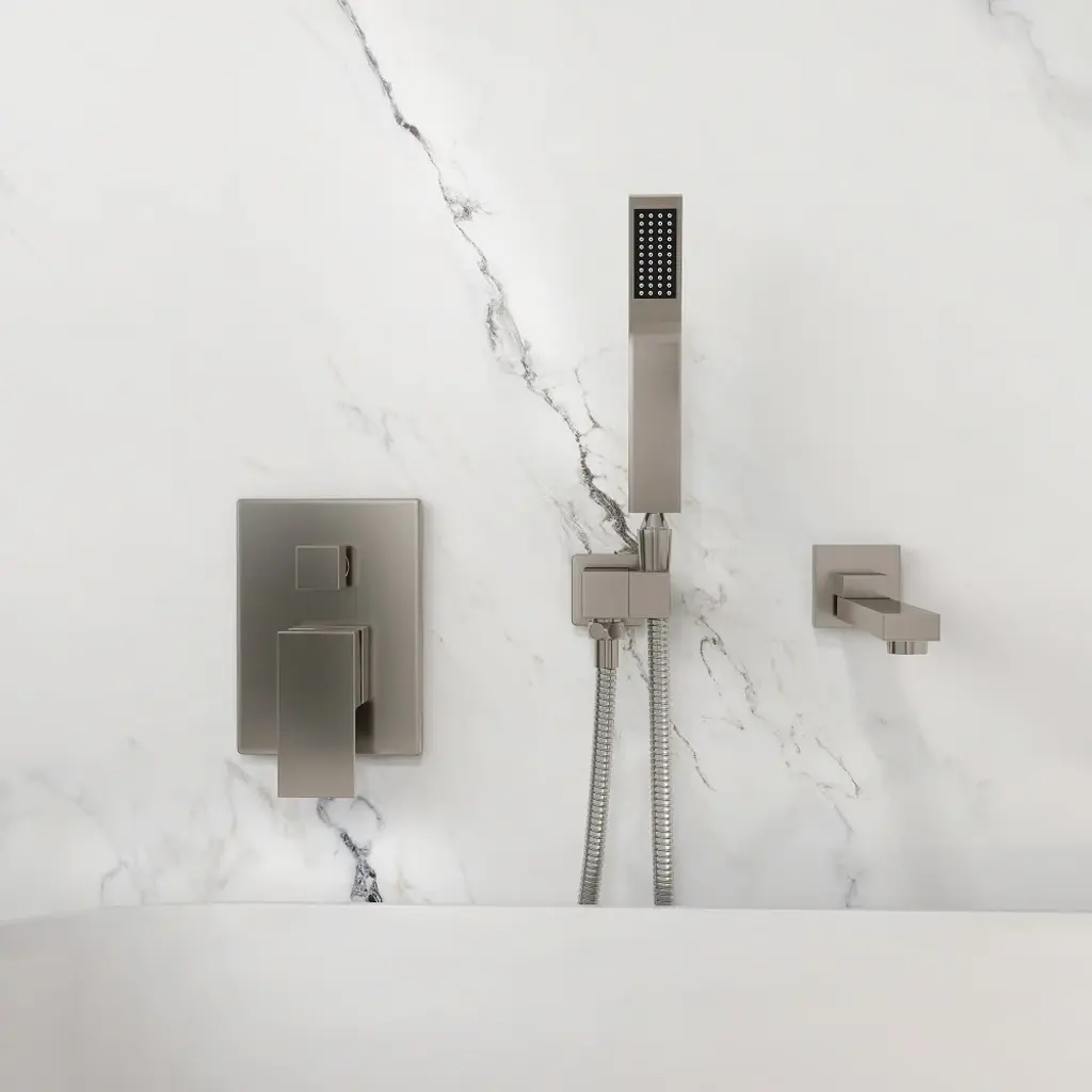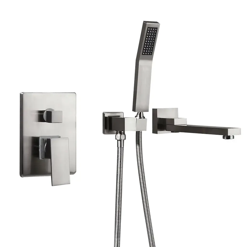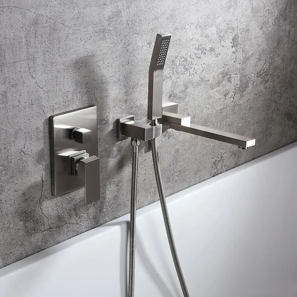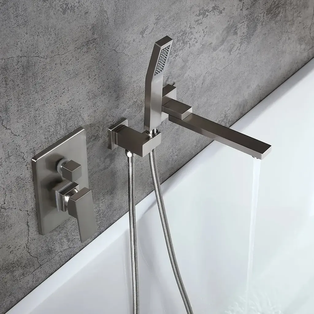 Ultramodern Brushed Nickel Wall Mounted Swirling Tub Filler Faucet With Hand Shower