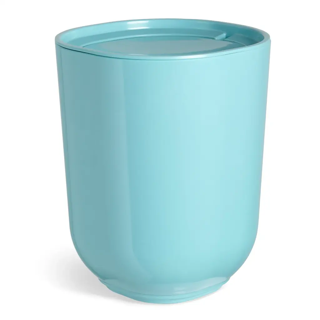 The contemporary Step collection of bathroom accessories by Umbra features a step detail on the bottom of each piece which gives the illusion of levitation above the surface that it is sitting on. The pieces are constructed of durable, easy-to-clean melamine and are available in a modern color palette that adds a stylish splash to your bathroom. This waste can with lid measures 7-1/2 inches diameter x 10-1/4 inches, and offers a discrete way to hide waste from view. Designed by Tom Chung for Umbra- original, modern, casual, functional, and affordable design for the home. Waste can with lid from the Step collection of bath accessories by UmbraMade of melamineOffers a discrete way to hide waste from viewMeasures 7-1/2 inches diameter x 10-1/4 inchesDesigned by Tom Chung