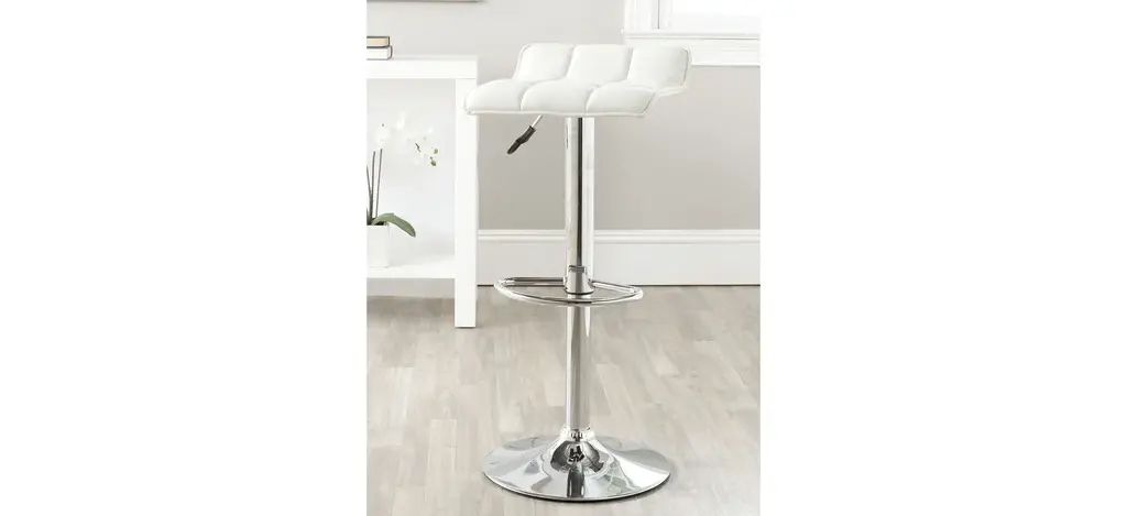 With its tufted details and contemporary lines the Una Bar Stool lends instant luxury to any atmosphere. Its sleek low back blends seamlessly into any space. Crafted with swivel seat that adjusts from 22.4" to 30.9", it combines white faux leather and chrome for a timeless look.