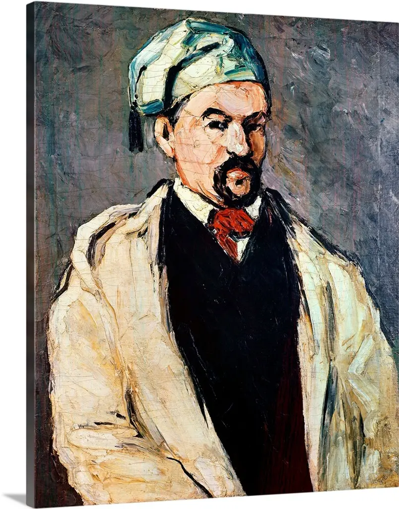Uncle Dominique (The Lawyer), by Paul Czanne, 1866, 19th Century, oil on canvas, cm 65 x 54 - France, Ile de France, Paris, Muse dOrsay. All. Lawyer uncle Dominique portrait beard moustaches head and shoulders portrait jacket hat white black foulard gray