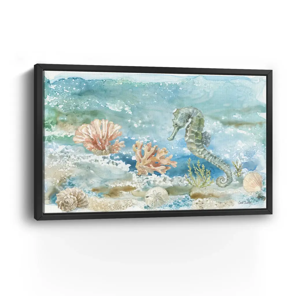 Infuse your space with the serene beauty of the coast through this captivating abstract coastal canvas art print. This piece features a harmonious blend of soft blues, sandy beiges, and gentle whites, evoking the calming essence of ocean waves and coastal breezes.Available in black frame, dark walnut frame and oak frames, or as a frameless canvas. Our Gallery Wrap Canvas Prints are proudly assembled with high quality materials in California, USA. Each piece is printed on a thick, archival grade canvas using Giclee technology. It is then hand-stretched by our experienced artisans over solid pine bars, which will not warp over time. The final product is a piece personally crafted for you to confidently display on your wall. Care and Assembly: Ensure that the location of your piece has little to no exposure to heat, sunlight, and moisture. Wipe clean, only if needed. Each piece includes a sawtooth hanger to hang on your wall horizontally.