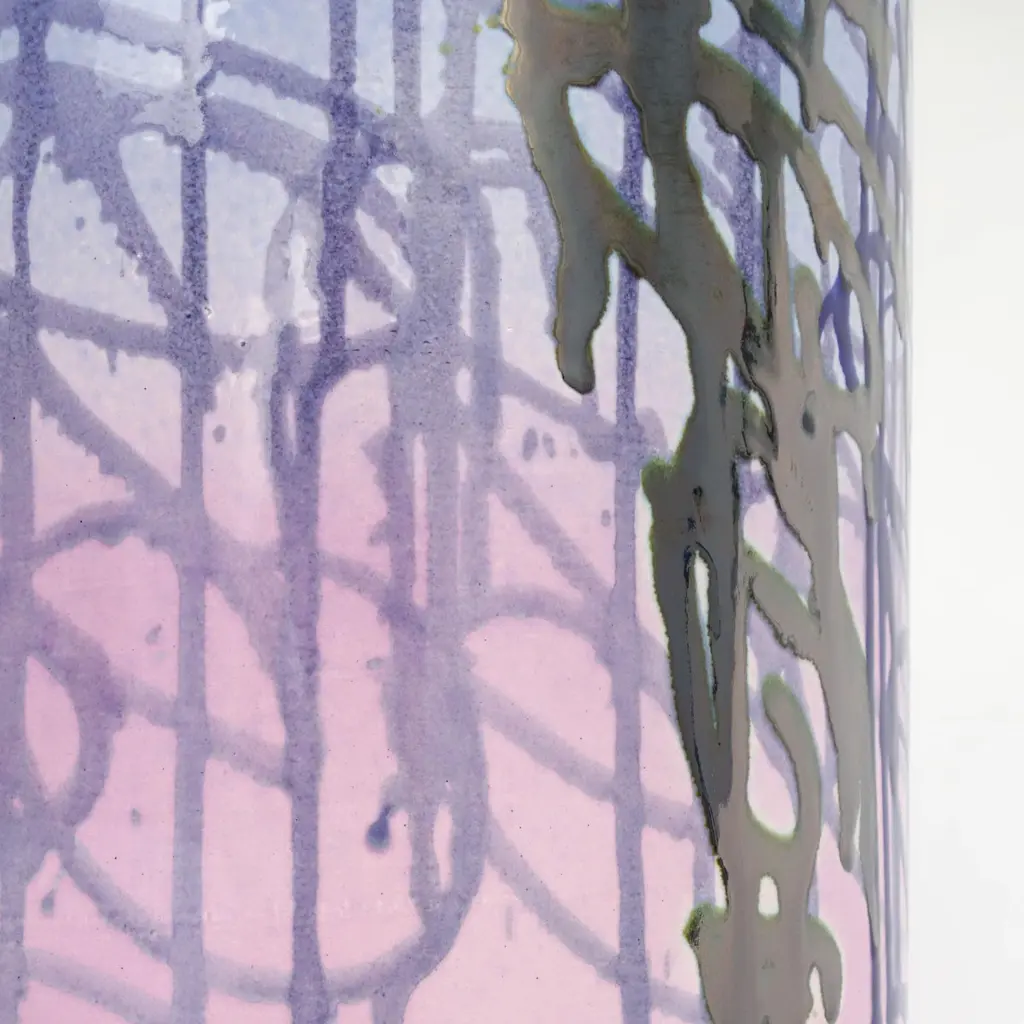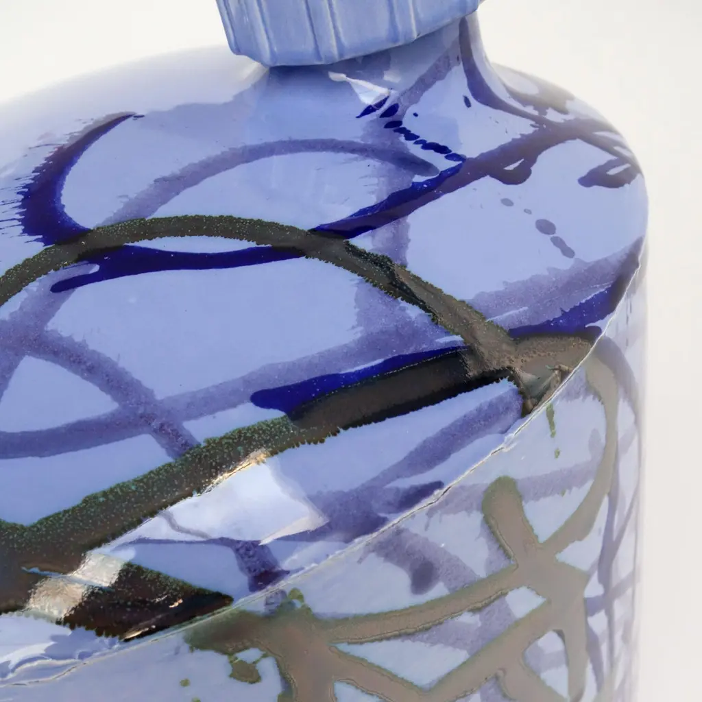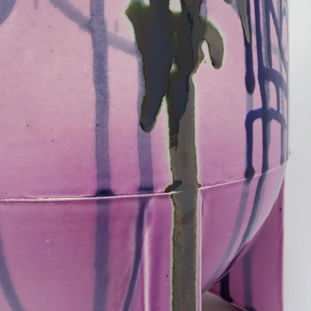 Under Pressure 11 by Yuri van Poppel.Dimensions: D 27 x H 55 cm.One of a kind.Material: earthenware, layered ceramic glazes, various colours.Handmade and spray-painted by hand by SunkOne. Removable lid.Everlasting graffiti spray-painted with ceramic glaze.Under Pressure pays homage to the rich history and culture of graffitiwriting, referencing both a writer’s tools and targets at the same time.From the cap of the first marker used to get up, to the fire extinguisherused for getting up higher.An echo of structures and machinery, industrial wastelands in the orangenight light. Powerful memories and sensations poured into a robust ob-ject -and a refined work of art. A unique handmade earthenware object,spray-painted by hand in various layers of ceramic glaze.Glazed Graffiti explores the aesthetic value of vandalism. A post-graffitiproject by SunkOne, aiming to eternize graffiti-writing by trespassing intoa new artistic medium.Glazed Graffiti was born out of the desire to write graffiti that lasts forever.To make this shift from ephemeral to eternal, graffiti writer SunkOne hadto cross the boundaries of traditional street graffiti. By changing the con-text of street tagging he wants to further explore the aesthetics of whatis often labeled as vandalism. To him, the tactility, opacity and shine ofceramic glaze mirrored the mesmerizing appearance of wet paint and ink,so he set out to engineer a spray can that would enable him to paint withceramic glaze without losing what he loves most about graffiti: the rawenergy and the rudimentary lines. With these air pressurized spray canshe is free to move around ceramic objects and surfaces and capture thepowerful visual language of graffiti writing in imperishable works of art.About SunkOneSunkOne (Yuri van Poppel, 1975) is a Dutch designer, contemporary artistand graffiti writer. Since drawing was his way to express himself as a child,he was instantly hooked when graffiti came from New York to Europe inthe mid-eighties. Seeing his name up written in stylized letters was anextremely powerful feeling to him at that age -and it still is. After studyingart history and design in the UK and The Netherlands, he worked in designand advertising winning multiple awards for his creative work.Simultaneously he participated in various national and internationalprojects and exhibitions with his graffiti work. With Glazed Graffiti,he is the first ever to spray ceramic glazes using custom built spray cans,capturing the raw energy of street writing in a new artistic medium.